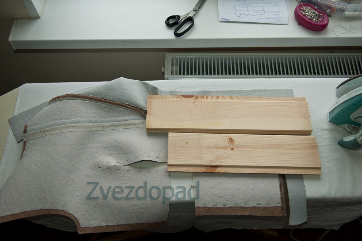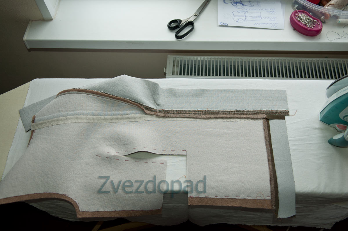 Zvezdopad Опубликовано 30 октября, 2016 Автор Поделиться #2153 Опубликовано 30 октября, 2016 без лирики ...её хватило в предыдущих постах про крой В принципе с кроем всех деталей всё ясно, берём выкройки, кроим, припуск везде одинаковый.А вот с кроем полочки (перед) начались проблемы. Проблема раз - нехватка ткани. Красными стрелками показано, где И было принято очень сложное решение - шов в том месте, где отгибающийся лацкан никак не помещался. Лучше там шов не делать вообще. Надставка низа другой тканью (тут может и хорошо, что ткани не хватило), потому что лоден ткань толстенькая в сравнение с тканью пальто и подгибка из лодена будет уже некрасивой. Второй карман над первым (тоже ткани не хватило). Пока ещё думаю, вставлять туда молнии или нет. На раздумья - ночь. Проблема два - способ дублирования. Лоден ткань нестабильная. Это трикотаж, к которому приваляна шерсть. Он не держит форму. На бесклеевое дублирование уходит много времени и нет гарантии, что стабильность будет такой так, надо. Поэтому - делать придётся клеевое дублирование всей полочки. Это решение принять тоже было сложно. Хотелось же, как у порядочных людей:-) решение надставки лацкана Сшиваем, разутюживаем, подрезаем припуск ступенчато Теперь край припуска нужно максимально истончить и неравномерно при этом. Ножницы зиг заг для подрезки вам в помощь, у меня их нет. НО уже давно приловчилась подстригать , времени уходит больше, но не критично, минуты две на каждый срез. Викухин чесок - разлохмачиваю край Коробочка для мельчайшего мусора и валик для его сбора очень упрощают жизнь... потому что всё это упавшее на пол надо ещё потом собирать, а лень. Разлохмаченные припуски пришиваю козликом проводя иглу в толще лодена Потом ещё раз отпариваю шов.Можно дублировать полочку.Это в общем-то простая операция. Утюгом не возить, а ставить его, давить с силой совсем не обязательноДеталь должна помещаться вся, не свисать, пресс - лучшее решение, но его нет. Поэтому, клею на столе, на гладильной доске не помещается.Обязательно каждой детали дать просохнуть. И клеить не халтуря...чтобы не отодрать уже никогда. единственный способ жить хорошо - сразу уходить оттуда, где плохомой канал на YouTube, мой instagram, моя страница ВК Ссылка на сообщение Поделиться на другие сайты Поделиться