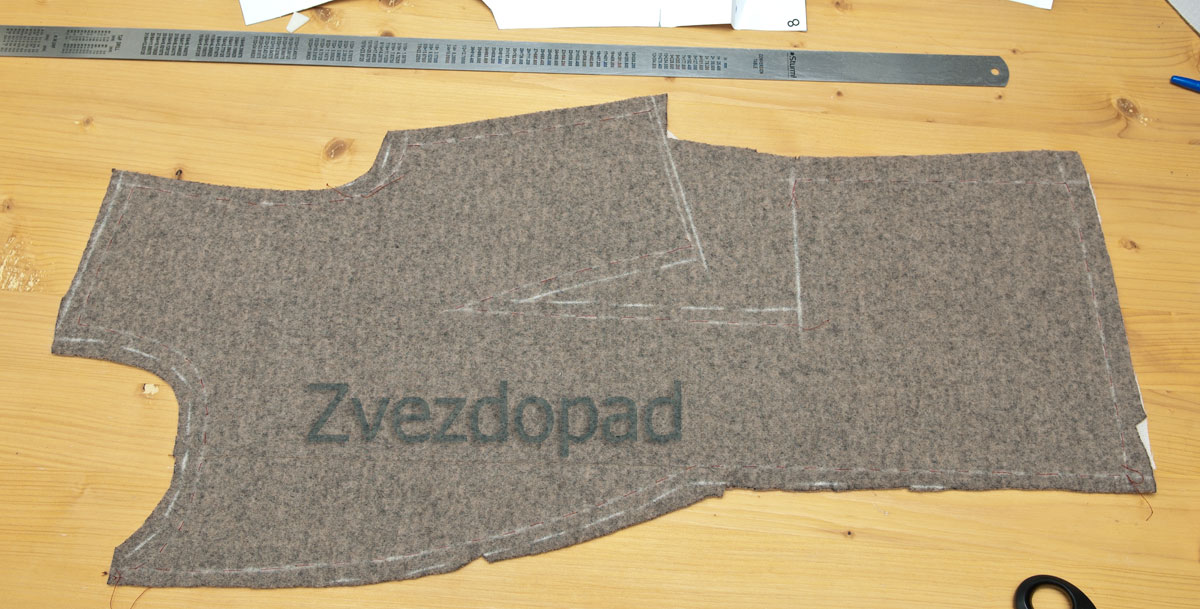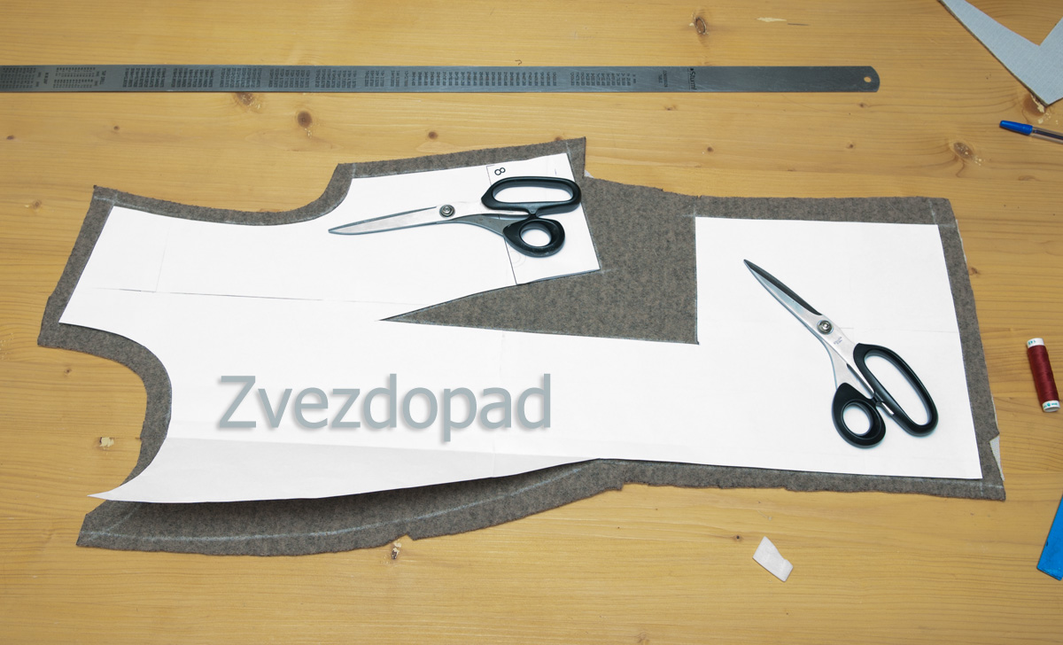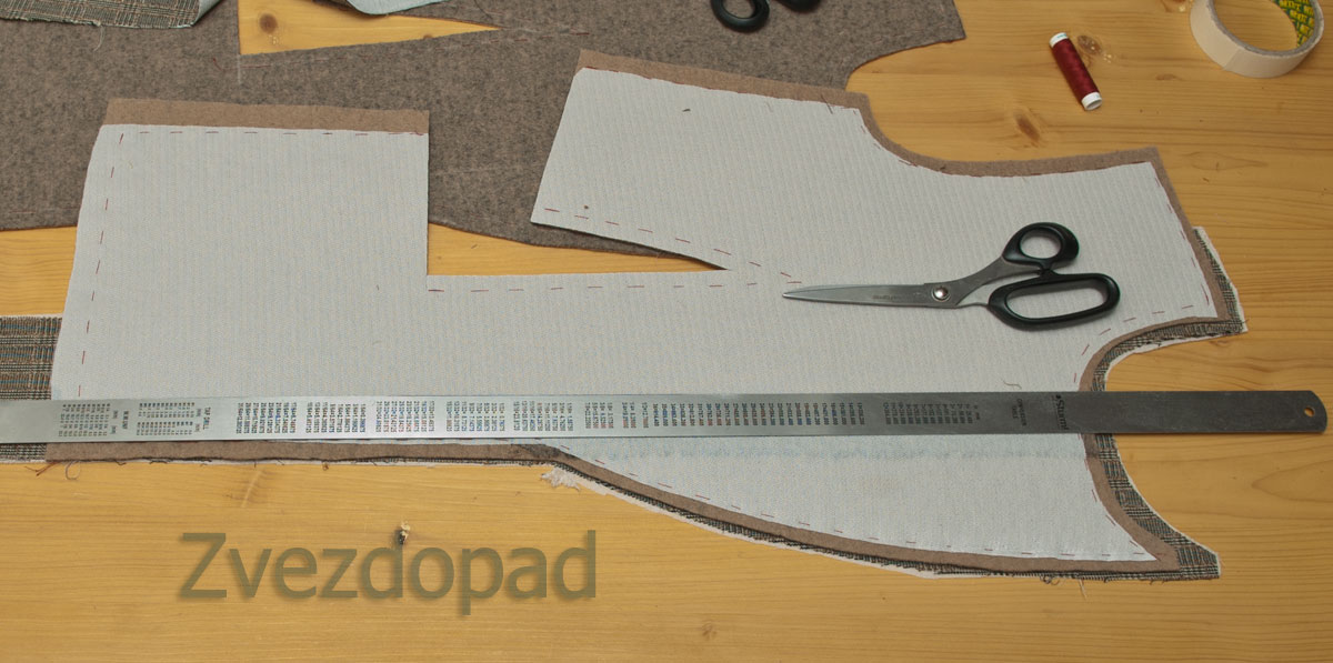 Zvezdopad Опубликовано 30 октября, 2016 Автор Поделиться #2154 Опубликовано 30 октября, 2016 про осноровкуПроклеили, теперь детали нужно осноровить. Почему?Ну, погрешности бывают. А у меня вообще кусочек из которого вытачка ещё даже и не вырезана. Выкройку кладу на лицевую сторону ткани. Мне нужно контролировать шов, которым наставила лацкан. Чтобы он был точно прямым и вертикальным. Линейка метровая в помощь.Обвожу выкройку И контрастной ниткой простой намёткой сразу по меловым линиям - они крайне недолговечны. Можно всё по изнанке фломастером обвести, если бы не этот шов Сразу рисую припуски, обрезаю лишнее, за исключением бокового (шов, к которому пришивается бочок, потому что надставки на бочке ещё нет. изнаночная сторона А теперь ближе Клеевая обязательно должна чуть-чуть, но в шов попасть. Плохо, когда проклеен весь припуск. Если так случается, то после того, как шов прострочен, лишнюю клеевую снимаю и отрезаю, так будет, когда застрочу вытачку, потому что клеевая на ней на всём припуске. Накладываю одну деталь на другую, уравниваю, если есть что.Плечевой правой полочки понизила сразу. Надо не забыть будет и на рукаве убрать эти лишние 7мм. Так осноравливают все парные детали. И на сайте у нас есть статья, она так и называется Осноровка деталей единственный способ жить хорошо - сразу уходить оттуда, где плохомой канал на YouTube, мой instagram, моя страница ВК Ссылка на сообщение Поделиться на другие сайты Поделиться