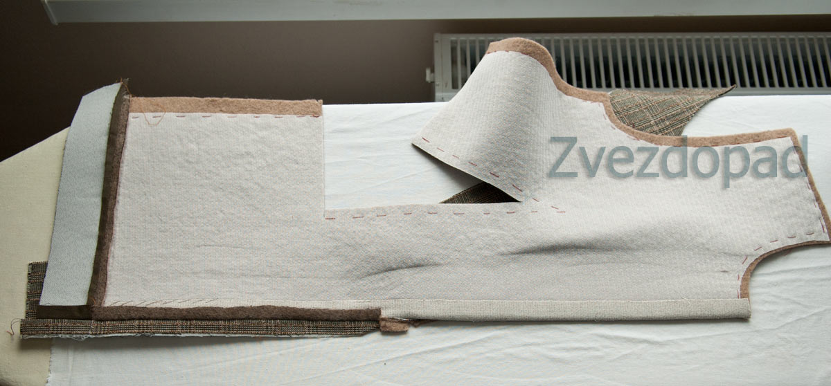 Zvezdopad Опубликовано 31 октября, 2016 Автор Поделиться #2158 Опубликовано 31 октября, 2016 про пришивание подборта к борту Подборт подкраиваю по полочке ( можно буду так её называть по старинке?), потому что она осноровлена и уже более верна, чем выкройка. Вот из такого "сора" крою подборт - главное - выдержать клетку на обоих бортах по месту перегиба лацкана, чтобы была зеркальной. Это два бочка бывшего пальто, расслоенные и состыкованные воедино из второго слоя (рыжего) скроены бочки к пиджаку... На этой стадии решаю озаботиться выкройкой подкладки полочки, пока подборт не пришит к борту. Накладываю выкройку на подборт и рисую место шва соединения подкладки с подбортом ( красная стрелочка) Разрезаю выкройку, закладываю вытачку и убираю лишнее с бокового шваВыкройка подкладки готова.всю остальную подкладку скрою по деталям пиджака, которые уже выкроены, а вот эту деталь - по выкройке Проклеиваю подборт. Для него взяла проклейку тоньше, чем для полочки. Надо бы наоборот, но эта тоненькая не удержала бы лоден, он очень нестабильный.Все парные детали укрепляются клеевой не разделёнными друг от друга. Нижний подборт уже проклеен, кладу на него лицевой стороной второй подборт, сверху клеевую, не выкраивая. Утюгом делаю несколько проклеенных мест и только после этого выкраиваю клеевую. То есть - клеевую вообще никогда не крою по выкройке - только по деталям. Но, детали перед этим выверяю, накладывая на них выкройку, чтобы не произошло смещения долевой и утка Проклеила и оставила до полного высыхания обе детали, только тогда, когда они высохнут, осноровлю.уффф... чего-то устала, фото ещё примерно столько же, но как-то уже без сил. Выложу завтра. единственный способ жить хорошо - сразу уходить оттуда, где плохомой канал на YouTube, мой instagram, моя страница ВК Ссылка на сообщение Поделиться на другие сайты Поделиться