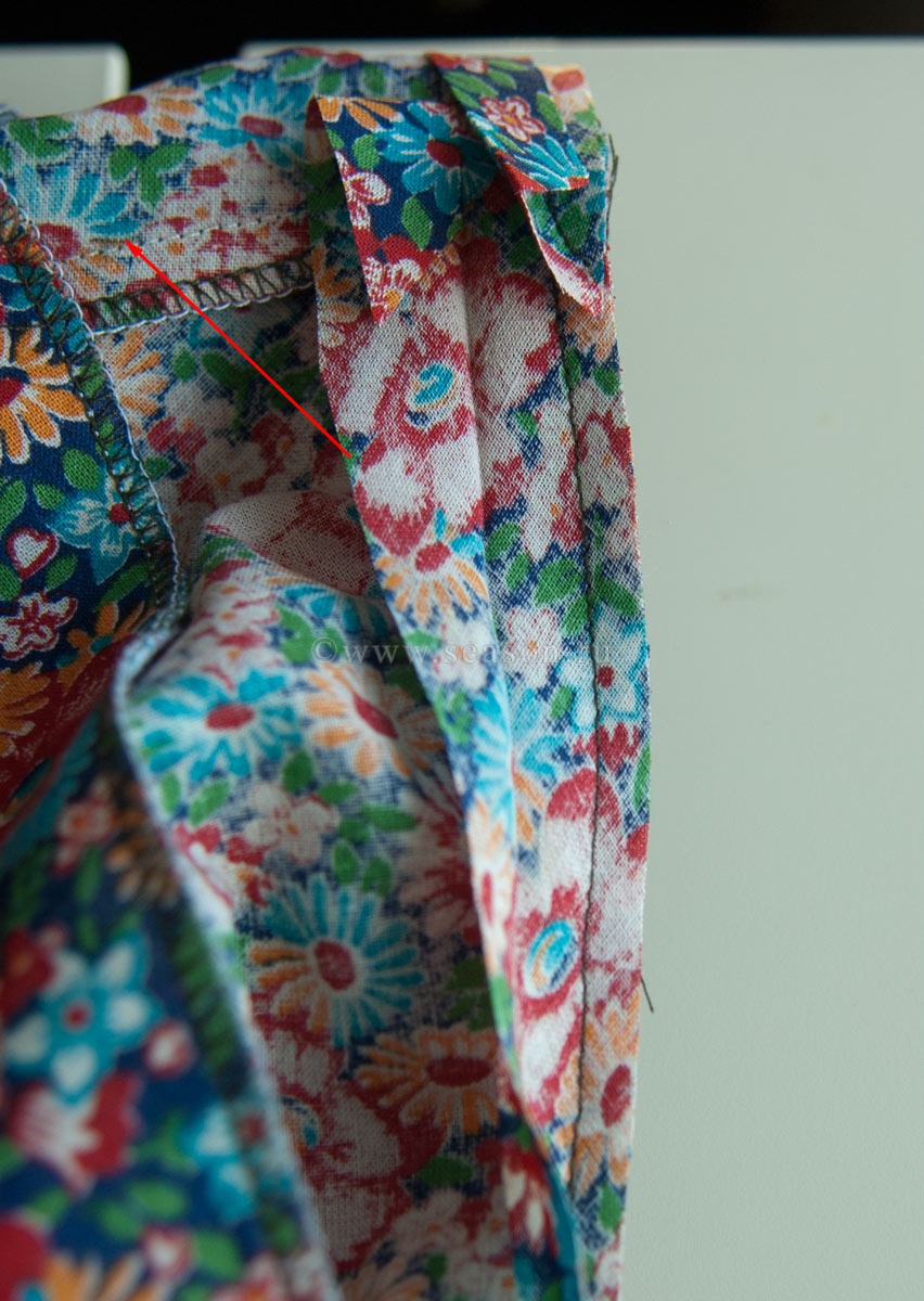 ещё там видно две булавки - одна вколота перпендикулярно шву ( с белой круглой головкой)