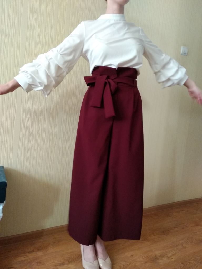 LITA Опубликовано 28 апреля, 2020 Поделиться #116 Опубликовано 28 апреля, 2020 На мой личный взгляд такой пояс брюк смотрится только с достаточно облегающим верхом. Потому что все, менее облегающее будет вылазить из-под пояса, и именно на такой пояс некрасиво наплывать. Во время движения. И фото по этой причине могут не очень хорошими получиться в процессе мероприятия. Поэтому мой выбор был бы: торс - боди, эластичное или другое достаточно комфортное небольшого объема. Хочет декольте, пусть будет, но точно без корсажа, торс действительно будет смотреться очень коротко. Если хочется прозрачности без резанья фигуры и демонстрации белья, то не бюстье и корсаж, а двойной лиф, к примеру, или нижний слой телесный.И любые рукава! я бы еще пышнее сделала, эти совсем скромные на фото ))) Но при очень компактном торсе ))Да-да-да! Вот она мысль наша общая! Была... Вот картинку нашла более подходящую для моей затеи. Центральный вариант. И брюки эти красиво называются - "Палаццо" Ссылка на сообщение Поделиться на другие сайты Поделиться