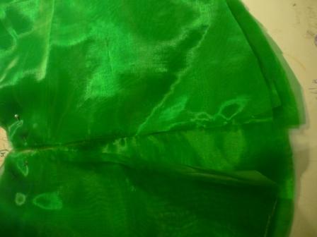 В дальнейшем постараюсь показать, как выкладываю и режу увеличенные блинчики из органзы на примере подъюбника для зеленого финального платья. Делается все за один день...