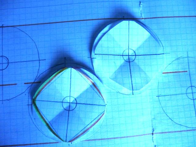 Я срезаю на лекале часть круга, как показано. Шаблоном когда-то послужило солнышко, выпоротое из уже готового волана.