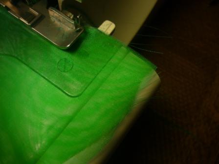 Все вырезанные воланы разрезаем, скалываем точно по направлению, срезаем все лишнее четко по нужному размеру - внешние и внутренние круги обязательно. Затем сшиваем и пришиваем к сетке. После этого на наколотом подъюбнике срезаем все лишнее по краю. Я раскладываю волан на столе и опять придирчиво выравниваю небольшие зарезы. Пришиваю ригелин. Все...