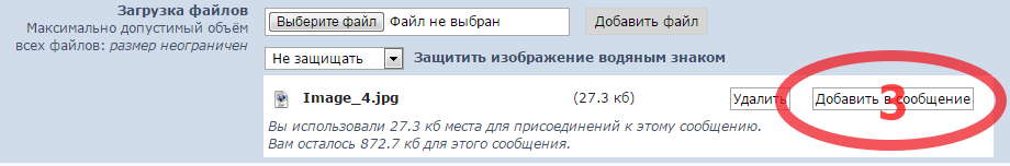 Размер всех файлов загружаемых к сообщению (или картинок) не должен превышать 0,9Мб.