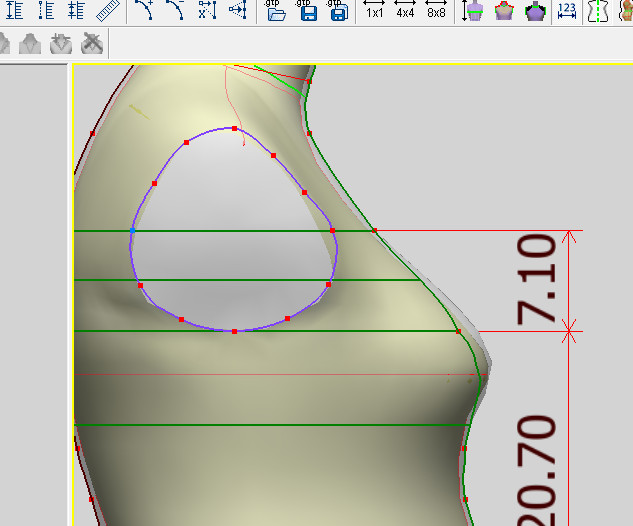 arhimed Опубликовано 8 ноября, 2018 Автор Поделиться #1059 Опубликовано 8 ноября, 2018 возможно как то связано с рукавами.Вы меня не поняли. Я имел ввиду вот эти точки - которые на виде сечений (а не на виде спереди и сбоку).При любом перемещении они заваливаются влево. хорошо, что хоть отмена работает...Я потратил вчера полдня и сегодня... - не нашел...Но затем решил хотя бы поискать возможность ... заставить программу автоматически строить свободный вариант (не копию). - через часа три наконец то нашел. Там так напутали... они добавили перемещение позиций галочек, что бы для брюк две галочки были симметрично на диалоге, а для платья - три...Короче... снял я эту ерунду и теперь хоть и "кривовато", зато можно выбирать (как для платья):Вот что интересно... Посмотрите, как по мнению программы должен быть свободный комбинезон (припуски прямого силуэта).И еще... Все таки это не новый тип оболочки. Он как и во второй версии не имеет возможности передвигать контуры видов спереди и сбоку перемещая точки в виде сечений. В виде сечений они серые (заблокированы)....Я еще поковыряюсь... поищу ошибку перемещения точек в виде сечений.Но мне все это начинает надоедать... Работы больше, а "призов" меньше... Ссылка на сообщение Поделиться на другие сайты Поделиться