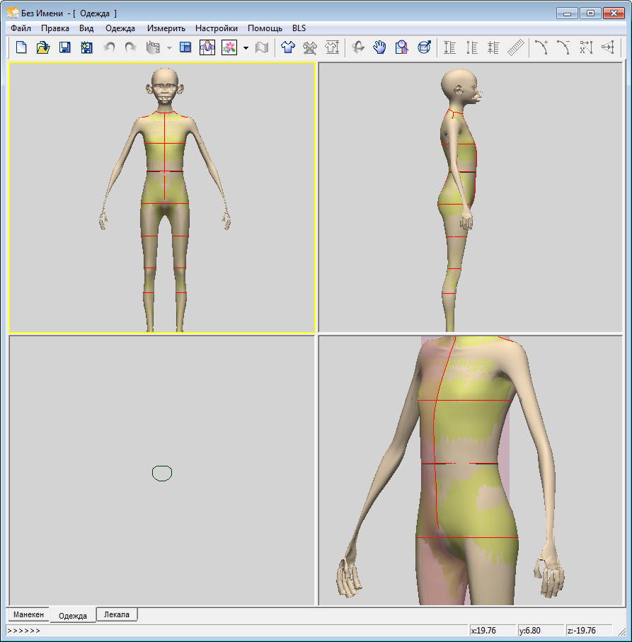 arhimed Опубликовано 21 марта, 2019 Автор Поделиться #1231 Опубликовано 21 марта, 2019 По поводу следующих обновлений. Версия LSX_3_2018_BLS. Постараюсь поковырять её еще (в первую очередь). Из того, что должно получится - мультиязычность. Все оставшееся - очень маловероятно...Все, что я мог в 2018м году я сделал. И улучшить что либо еще - мне уже трудно (практически - это уже не возможно).Хотелось бы... подвязать вывод на печать (на принтер), добавить загрузку любого меша прямо в модуль лекал, включить автосохранение, исправить глюки при перемещении точек в окне сечений брюк комбинезона...Но это уже такие задачки, которые я даже потратив месяцы - не уверен, что смогу.Но... кое что еще получается.На прошлых выходных решил поискать, где же программа изменяет исходную базовую сеть (меш) для модулей одежды и лекал.Если вы обратили внимание, то должны были заметить. Что при задании уменьшить мнимый манекен (манекен в модуле одежды и леал) исходный меш тоже изменяется. Причем не совсем так, как нужно...Если у вас в настройках стоит значение 0,5см (похудение манекена), то при переходе в модуль одежды манекен похудеет... и исходный - тоже. Если затем открыть диалог "похудения" и не изменяя значения 0,5 нажать кнопку "ОК" - манекен останется таким же (и это правильно). А вот базовый - опять похудеет на 0,5 (это не совсем правильно). И так можно несколько раз. Каждое "похудение" искажает меш. В итоге на базовый - смотреть страшно... Я решил это исправить. И вчера нашел решение.Правда пришлось отказаться от автоматического срабатывания команды "создать одежду" при переходе в модуль одежды (из-за конфликта команд). Зато удалось вставить дополнительный диалог, где можно выбрать - уменьшать базовый или оставить как есть.Еще нашел место, где можно удалить предел (0...3). Например, если задать "похудение" -1, то манекен потолстеет на 1см (отступ от поверхности)...Можно удалить этот предел... но я не уверен, что нам это нужно.Если даже дать исходному "похудеть", а потом на эту же величину "поправиться", то сеть всеравно в некоторых "узких" местах "ломается"...А вы как думаете???Для примера взял детский манекен (на нем больше заметны искажения от "похудений")В нижнем ряду средняя картинка - пример походения-потолстения.Как видите - программе не удалось вернуть как было.... Ссылка на сообщение Поделиться на другие сайты Поделиться