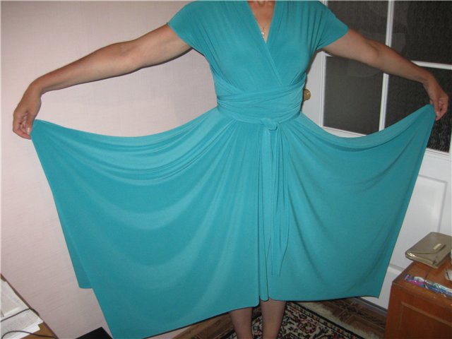 Синичка-Яля Опубликовано 22 июня, 2010 Поделиться #273 Опубликовано 22 июня, 2010 Девочки! Огромное спасибо за прекрасную тему. А вот и мое новое платье. Шилось в пожарном порядке на 25 июня на свадьбу. Трикотаж "масло", но какое - то тяжелое (наверное фальсификат). Юбка "квадратное солнце", спереди лифа - запах, на талии резинка. Швы не обрабатывала. Сорри за фотографии (фотограф - муж). Ссылка на сообщение Поделиться на другие сайты Поделиться