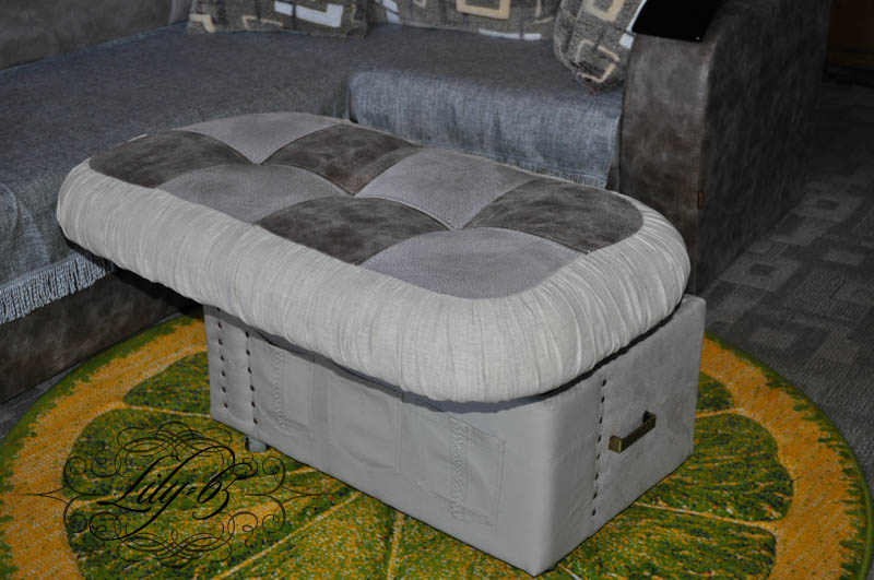 lily-56 Опубликовано 10 января, 2019 Автор Поделиться #1305 Опубликовано 10 января, 2019 (изменено) Ну и апофеоз ,моей дизайнерской мебельной мысли на сегодняшний день.Пуф-кофр-столик.А началось все с табуретов, точнее с поиска креплений для них. На запрос крепления для мебели,вылезло столько прикольных штук.))) Тараканы устоять не смогли))шикарная идея , правда?Во думаю, как самый раз туда и пылесос убирать можно, и как стол для ноута, когда на диване сидишь, да и просто лапки вытянуть когда на кресле)))Заказала крепления( ждать конечно измучилась, тяжелое это бремя для близнеца, но вроде затухнуть не успела)))Пока суть да дело, распорола подушки, которые шли в комплекте к дивану.Решила их использовать как основной цвет, ну естественно для грандиозного плана подушек не хватило, в дело пошли детские старые джинсы( подходящие по цвету) и кусок льняной ткани, тоже был))Верхушка готова))) а креплений нету((( Лана ,...пошла фурнитуру искать по магазинам. Ага ,размечталась))) Колесики собирала по трем магазинам. С ручками вообще пипец, ну вот кому они по одной нужны?Но наши победили) А уже после завтра Новый год...Пришли крепления... поэтому момент сборки пропускаю, все делалось со скоростью пули.Собрали короб из дсп(старая мебель в ход) обтянула поролоном и тканью. Соединили низ с крышкой, привинтили колесики.Мояж, прелесть))) до сих пор не могу нарадоваться))) Всеее))) ну пока все, завтра продолжим)) Изменено 10 января, 2019 пользователем lily-56 lily-65, Люба.мой сайтмоя темка vk Ссылка на сообщение Поделиться на другие сайты Поделиться