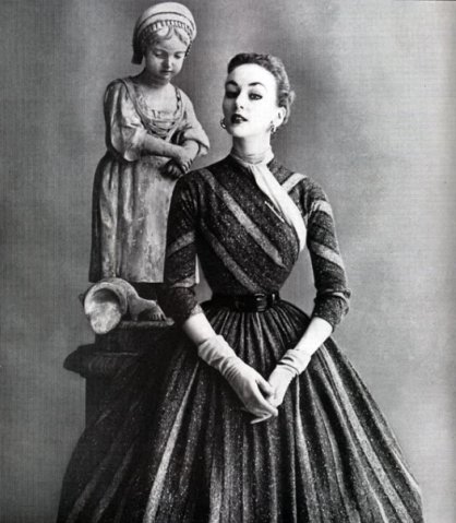 Посвтречалось платье 50х с ЦКР ( с ластовицей), подметила для себя, как декоративно смотрится настроченная лента на шов рукава.