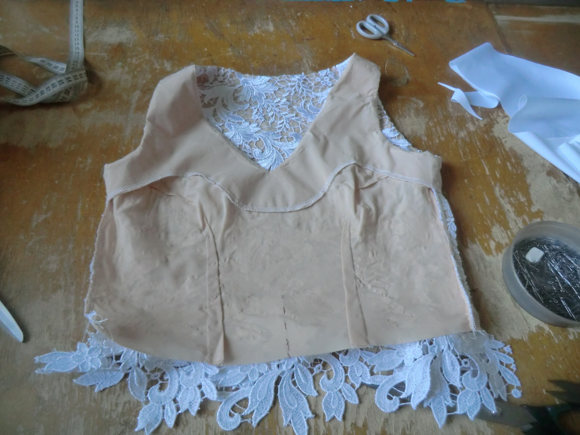 Русса Опубликовано 2 июля, 2018 Автор Поделиться #765 Опубликовано 2 июля, 2018 Всем добрый день) Покажу и я платье для выпускницы, которое шила на прошлой неделе. Идея платья была такой: Нижняя юбка-полусолнце из плотного атласа, сверху 4 слоя солнце из еврофатина. Верх-кружево на подкладке из легкого крепа. Верх платья полностью простеган -кружево вручную пришивалось к подкладу, вытачки делала путем вырезания лишнего и подшивания оставшегося) Держится платье на сантюре. Фото есть только рабочие, на дочке -заказчица попросила сфотографировать , что получилось) Заказчица чуть шире в талии. Либо делай, либо не делай! Но ни в коем случае не пытайся пытаться!Мой Яндекс Ссылка на сообщение Поделиться на другие сайты Поделиться