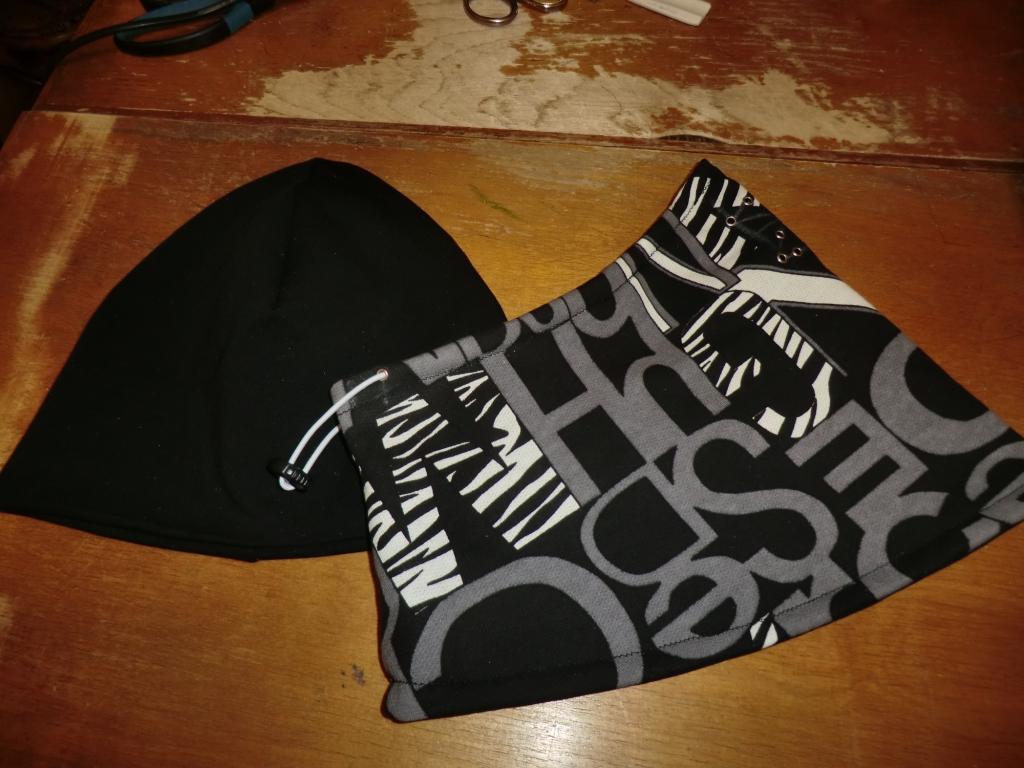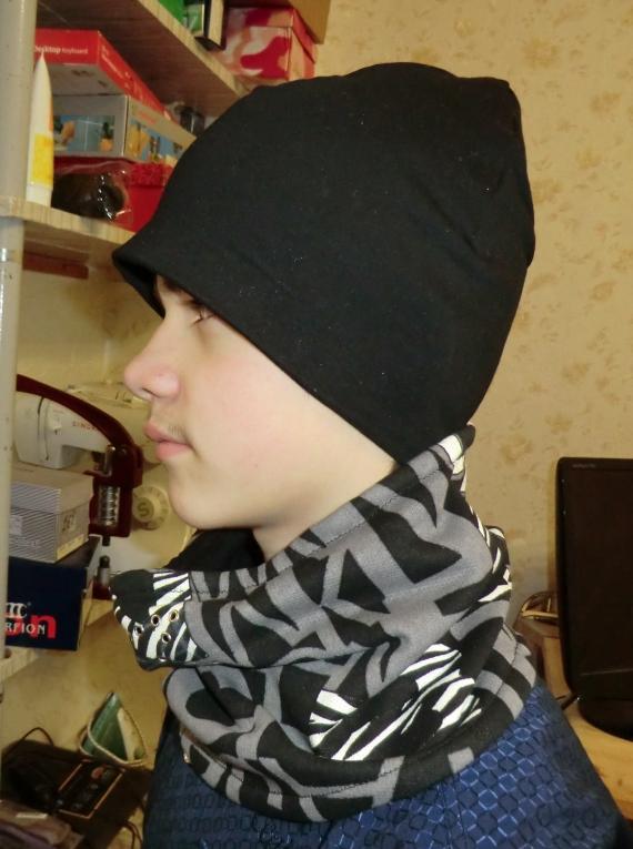 Русса Опубликовано 27 октября, 2014 Автор Поделиться #135 Опубликовано 27 октября, 2014 Итак, пошив шапки-балаклавы. Википедия пишет так: Балакла́ва (англ. Balaclava от названия города Балаклавы), или лыжная маска — головной убор (вязаная шапка, шлем), закрывающий голову, лоб и лицо, оставляя небольшую прорезь для глаз, рта или для овала лица. Фактически соединяет в себе шапку и маску-чулок. Традиционно изготавливалась из шерсти, в настоящее время также из различных видов синтетического трикотажа. https://ru.wikipedia.org/wiki/%C1%E0%EB%E0%...%F3%E1%EE%F0%29 Как замечательно показала Маша Goldfish сейчас производят такие шарфы, надевающиеся на шапку. После рассуждений я пришла к таким выводам: отдельно шарф+шапка удобен тем, что эту конструкцию можно носить отдельно, застегивать такой шарф под свой размер. Минусы такой конструкции в том, что в женском варианте липучка-застежка может путаться в волосах ( если они длинные)- это раз. Кроме того в продаже у нас есть только велкро-тесьма, значит "как в магазине" ее пришить не получится. При использовании тесьмы надо либо брать мебельную- она широкая, но достаточно жесткая, что неудобно при растегивании, кроме того в области шеи будет "стоять колом", что может быть неудобно в использовании. Опять же для детей предпочтителен некий минимализм конструкции- т.е. шапка-шарф в одном флаконе имеют меньше шансов потеряться при раздевании в школе. Ну и окончательная уверенность, что вшитый шарф не съедет и ребенку не будет поддувать в шею тоже важная вещь) Пошив в картинках:1- кроим сам "шарф"- по ширине верхняя часть (прямая линия от края до края)- 58 см, нижняя 68 см2-Сшиваю основную ткань с подкладом на ширину лапки. Шов трикотажный 3-пришиваю к верхнему краю силиконовую резинку- для того, чтобы присобрать носовую часть, сделав "естественно-носовой выгиб" 4-крепко пришиваю шляпную резинку с одной стороны, к краю силиконовой5-Делаю надсечки припуска6-выворачиваю полученный шарф, скалываю носовую часть- чтобы проставить люверсы7- по разметке ставлю люверсы- они нужны для облегчения дыхания. Делать отверстие, как на "магазинных" моделях посчитала ненужным. Люверсы у меня есть с короткой ножкой ( как-то давно купила на распродаже упаковку, сначала расстроилась- на обычную ткань они не очень подходят, потом поняла, что для трикотажа это самый аккурат, сейчас довольна, как слон!)8- сшиваю часть заднего шва, чтобы поставить люверсы под резинку-стяжку(-ставлю люверсы, продеваю в них резинку. На фото нет момента, когда я резинку продела в стопор. Честно говоря я сначала так все собрала, хотела другой стопор поставить, но поняла, что он слететь может, поэтому все разобрала, и переделала)9-пришиваю второй конец шляпной резинки ,тк сшита только часть заднего шва, сделать это несложно. сшиваю остальной шов по осн.ткани, оставляя незашитым участок подклада.10-зашиваю подклад,отстрачиваю верх -сразу и кулиска получается для резинки, низ отстрачиваю "за компанию", для ровности. Шарф готов. 11- шью шапку. Расчет простой- обхват головы делю на 4, строю клинья. Так как у меня черный трикотаж тонкий, то для утепления я поставила флис- был только белый) поэтому основную деталь шапки я сделала подлиннее.сшиваю осн ткань и подлклад внакладку, зигзагом на 3 прокола12- сшиваю клинья, оставляя незашитым небольшой промежуток заднего шва, через него шапку выворачиваю 13- сшиваю верх и подклад 
