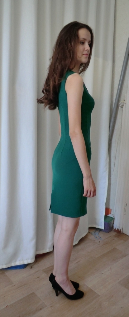 Русса Опубликовано 24 июня, 2015 Автор Поделиться #219 Опубликовано 24 июня, 2015 Платье для дочки на выпускной: Ткань- что-то скользко-синтетическое, достаточно плотное, приятное к телу.Время исполнения- выпускной будет в эту субботу, так что я планировала не спеша отшить платье после заказов, НО!.... в понедельник я узнала, что дочка приглашена на городской бал, как золотая медалистка.. так что в понедельник днем я платье раскроила, и сегодня (в среду) днем дочка отправилась на бал) а работа над другими заказами в это время не прекращалась..Поэтому: крой- максимально простой, платье приталенного силуэта. Единственный момент- учитывая соотношение талия-бедра я сделала по 4 талиевые вытачки на спинке и 4 вытачки на полочке+нагрудные вытачки.Обработка проймы-горловины как в МК у Оли 8Марта, за что ей огромное спасибо. На примерке чуть углубила центральные вытачки по полочке-спинке, и слегка забрала боковой шов на уровне бедер. Найти потайную молнию зеленого цвета в центральный шов спинки мы не смогли, поэтому я поставила молнию в боковой шов. Была мысль сзади черную молнию поставить, но т.к. с боковой платье наделось хорошо, то мы с дочкой остановились на этом варианте. Юбка- крой-полусолнце+доп клин, выкроившийся из остатков ткани. Все это присобрано на пояс, и сзади вшита молния. Бант- кусок органзы длиной 3,5м, в центральной части ширина 35 см, внизу-75 см, т.е при крое было плавное расширение с 60см (центр) на оставшуюся длину.Украшение- весьма дорогие камни (хрусталь жеж))+клеевые стразы изумрудного и черного цветов. Сделали полочку, по спинке пока только верхний ряд успели (оно же под волосами и не видно)) , к субботе довышиваем) Либо делай, либо не делай! Но ни в коем случае не пытайся пытаться!Мой Яндекс Ссылка на сообщение Поделиться на другие сайты Поделиться