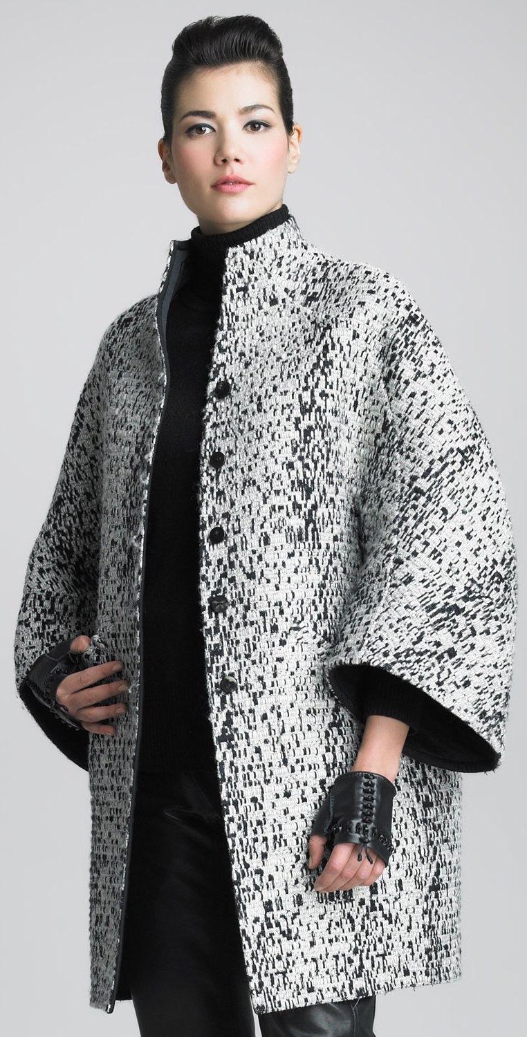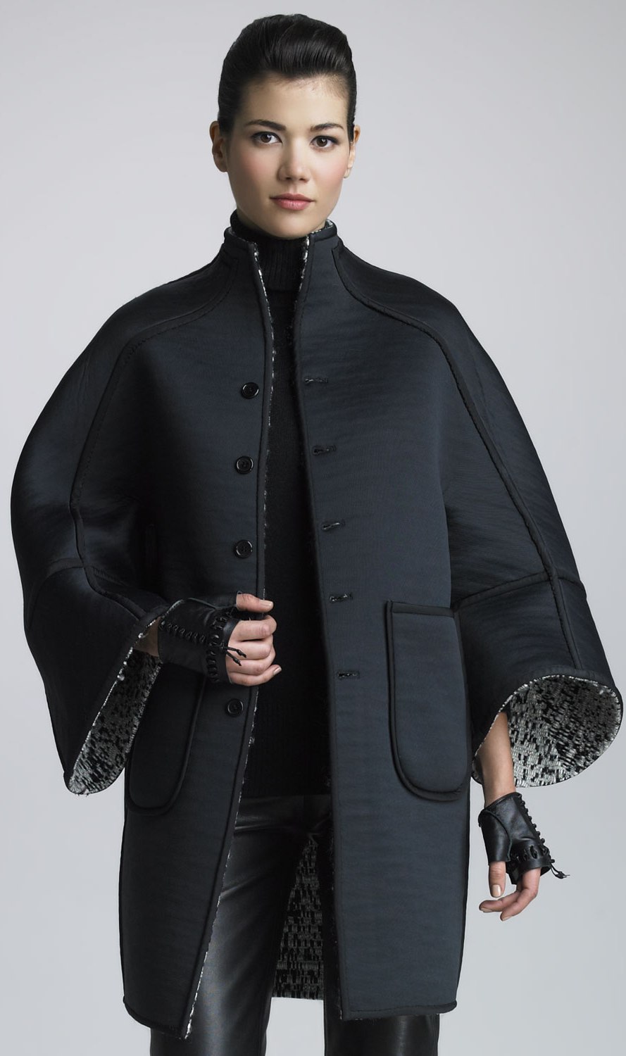 Milo Опубликовано 23 марта, 2014 Поделиться #144 Опубликовано 23 марта, 2014 (изменено) Откровенный минус - сбой рисунка на полочке - вернее - его подбор:) ткани надо было значительно больше, чтобы заморачиваться с подбором рисунка ... вот так он должен быть и на полочке, как на спинке Честно? не вижу в этом минуса ... нарушить хоть какие то правила - наверное у меня в крови, в своей работе за это точно бы не переживала ... Оля, мне очень-очень нравится, то что получилось ... жаль только, что не просчитала заранее некоторое неудобство конструкции ... Придется тебе почувствовать себя немного гейшей (есть в этом что-то японское) ... вспомнилось, что ходили они осторожными семенящими шажками ... короче не делали резких движений ногами, ну и руками, наверное, тоже ... этакие куколки в коконах ... Ну и, застёгнутая, в карманы входят только пальчики. Если засунуть всю ладошку - манжет рукава мнётся. Но...это не особо напрягает. А обрати внимание на карманы оригинала расположенные на л. талии ... без комментариев!Сразу же вспомнилось выражение моей приятельницы, что настоящие леди руки в карманы не сунут ... она это говорила клиентам ... тогда, когда не хотела возиться с карманами (делала ложные или вообще никакие) ... и - да, сама я ни леди, карманчиками пользуюсь ... Захотелось пооправдываться ... ... расстёгнутая эта конструкция очень не плохо переносится на теле, в застёгнутом состоянии - сковывает движения - надо в выкройке поднять пройму и на полочке и на спинке. Поправить причёску можно лишь в расстёгнутой куртке, в застёгнутой так руку поднять невозможно Смотри, оба варианта оригинала не застегнуты ... думаю неспроста ... пройма низкая, но рукав в пальто Руччи намного шире ... первоначальный вариант макета и был с таким же широким, но показалось немного диковатым ... уменьшила ... желающие, могут легко изменить лекало на широкий вариант (при раскрое увеличить припуск и на примерке заколоть понравившуюся ширину) ... но западание тогда точно гарантировано ...Для себя сделала следующий вывод - для удобства поднимать пройму ... на полочке подняла бы на 5см, на спинке на 3см. Изменено 23 марта, 2014 пользователем Milo Ссылка на сообщение Поделиться на другие сайты Поделиться
