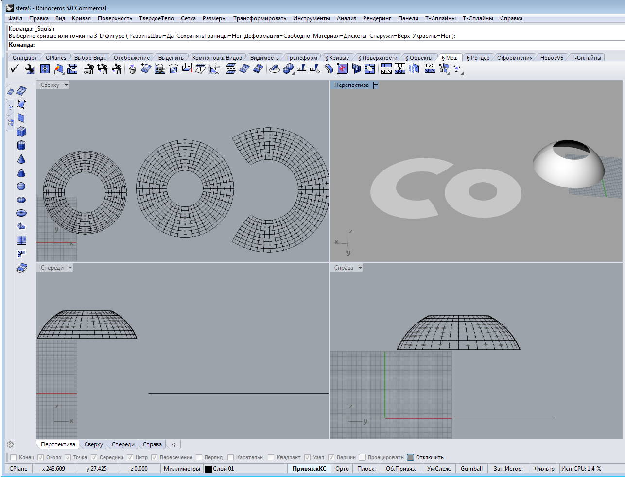 arhimed Опубликовано 15 октября, 2017 Поделиться #39 Опубликовано 15 октября, 2017 Развернула командой Squish с такими настройкамиСразу не смог найти куда пропали эти сообщения из темы "флешмоб"... (кажется эта тема - не совсем "та") Меня давно интересуют разные варианты разверток (с разными настройками и в разных программах). А чтобы точнее понимать как программа "расплющивает" я обычно делаю меш (полигональную сетку) из геометрической фигуры (так понятнее, когда известен прогнозируемый результат).Покажу примеры разворачивания с деформацией в нескольких программах.В Рино создал сферу и удалил часть граней (кусочек сферы). Настройки разворачивания видны на скрине:Эти же поверхности в Лукстейлоре:И в МД7: Как видите, результаты почти одинаковы. Но так будет, если деформация не превышает 4...8%. При больших значениях мы можем получить искажения.Ну например, если разворачивать сразу всю полусферу (в окружность) - такое развернуть без заломов (без значительных искажений) сможет только Рино. Но в Рино мне трудно оценить величину деформации. В Лукстейлоре и в МД7 полезно смотреть карту деформации. Ссылка на сообщение Поделиться на другие сайты Поделиться