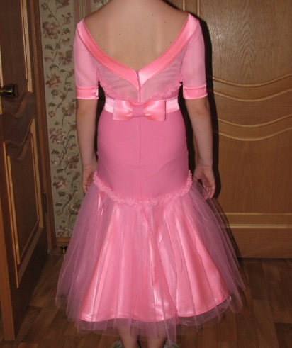 Vipera Опубликовано 17 февраля, 2014 Автор Поделиться #24 Опубликовано 17 февраля, 2014 Итак, вчера мы ездили на рейтинг Ю1 Д класс. Делюсь общими впечатлениями: как я писала в соседней ветке народ танцует кто во что горазд-вплоть до обычного бельевого кружева, портьерного тюля и вязаных цветов на платье. Такое ощущение, что портнихи (или родители) пытаются перещеголять друг друга в "оригинальности" пускай даже и ценой общего жуткого вида платья. По нашей латине: 1. Танцевать с длинным рукавом в маленьких залах очень жарко-меняли платья 3 раза-с потного тельца стаскивать узкий рукав занятие малоприятное, хорошо хоть в перерывах между турами платье успевает проветриваться ;))) 2. Боа очень сильно красит колени. Раза 2 вытирали влажной салфеткой. Кроме этого дочка периодически норовит помусолить потными же ладошками подол и соответственно руки тоже окрашиваются в розовый...3. Пояс "путешествует" по всей окружности талии. Но меня это не особо напрягает т.к. не очень люблю всякие лишние крючки-кнопки в платьях, к тому же он цельносшитый и шов не так заметен как застежка на крючках. 4. Ну и боа как ни смешно весьма травмоопасная вещь как оказалось! Дочка в перерыве, заигрывая, кривляясь и дрыгая ногами с партнером, умудрилась зацепиться каблуком за "петлю" между боа и подолом и чуть не расшибла лоб.Фото с моего фотика, зал темный и фоткала издалека;((( моя тема Ссылка на сообщение Поделиться на другие сайты Поделиться