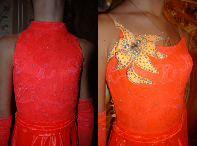 Vipera Опубликовано 6 марта, 2015 Автор Поделиться #146 Опубликовано 6 марта, 2015 Хорошо, ярко!..Обтачка аккуратная на подоле Латины. Что внутри цветов? шнур или ригелин трубка? Что за цвет ткани-компаньона для "манго" ? Внутри цветов регилин трубка разных диаметров (брали в Эсте на Пятницкой). Обтягиваю я так: сначала сшиваю мелким зигзагом длинную кишку по диаметру регилина, затем на незаправленном оверлоке (можно и ножницами) обрезаю близко к шву, выворачиваю и продеваю внутрь регилин. Цвет ближе к фуксии, чуть посветлее и порозовее чем на фото. А что сейчас "в тренде" в плане летучек? Наша тренер крылья на стандарт нам забраковала...В тренде или ничего или минимум-ленточки в основном, или веревки с декором (цветочки, пушки и тп), причем если платье с длинным рукавом, все это нашито на рукав же. А если крылья, то из гофре. моя тема Ссылка на сообщение Поделиться на другие сайты Поделиться