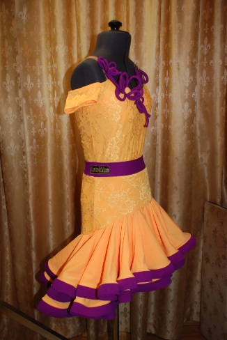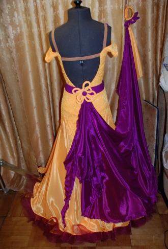 Vipera Опубликовано 5 марта, 2015 Автор Поделиться #142 Опубликовано 5 марта, 2015 Горяченький трансформер, Ю1 СТСР Е класс. Ткани: итальянский бифлекс, органза, перл, гипюр. Юбка на латину получилась неимоверно тяжелая..но так захотели, и как ни странно она довольно динамична. Имеет 2 оборки по 8 солнышек длиной 18 и 23 см, целиком из бифлека, регилин оборачивала полоской бифлекса, прострачивала прямым швом, чтобы не елозил и в таком виде пришивала, сильно припосаживая, как и в обычном случае. Стандартная юбка состоит из верхней 6 четвертинок солнышка в подрезы и нижней-воланы (по 10 шт) 30 см в 2 яруса на кокетке солнышко. Регилина ушло ровно 4 пачки на всю юбку. На фото он получился "не верь глазам своим"-в реальности он такого же цвета как и фиолетовая ткань. Пришивала, сильно запихивая его под лапку, чтобы получился эффект оборки. Чтобы юбки не крутились и не сползали, для страховки пришила на куп петли, а на юбки соответственно крючки по бокам. Крыло на стандарт, хоть и не в тренде сейчас, но тоже захотела маленькая хозяйка платья, (кстати она же и подбирала ткани;))) Оно съемное, держится на крючке под цветком и на кнопке чуть пониже (чтобы не смещалось в сторону при отведенной руке). моя тема Ссылка на сообщение Поделиться на другие сайты Поделиться