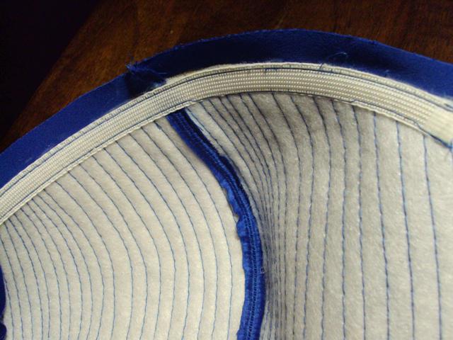 На верхнем срезе прострочила регилин. Нужно заметить что ткань нужно припосадить. Иначе получится что то безобразное.