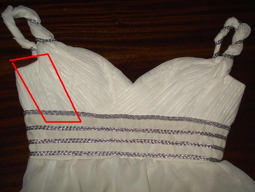 Обратите внимание как зафиксирована драпировка на оригинале и как на Вашем платье.