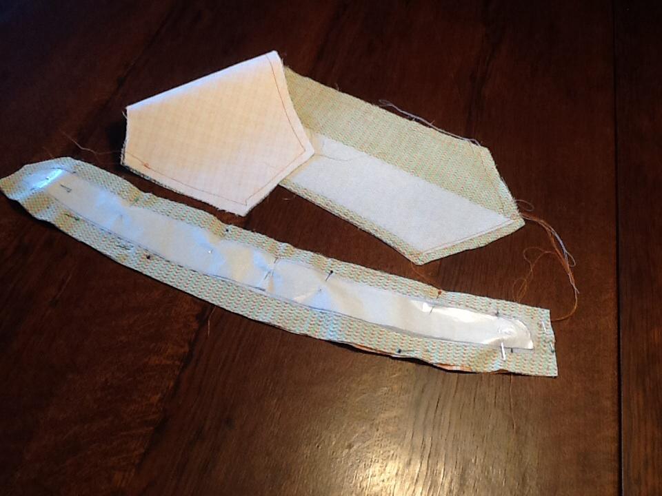 Воротник и стойка для жесткости проклеены рубашечными клеевыми- названия их не знаю. В острых уголках, при выворачивали, это создает дополнительную трудность.