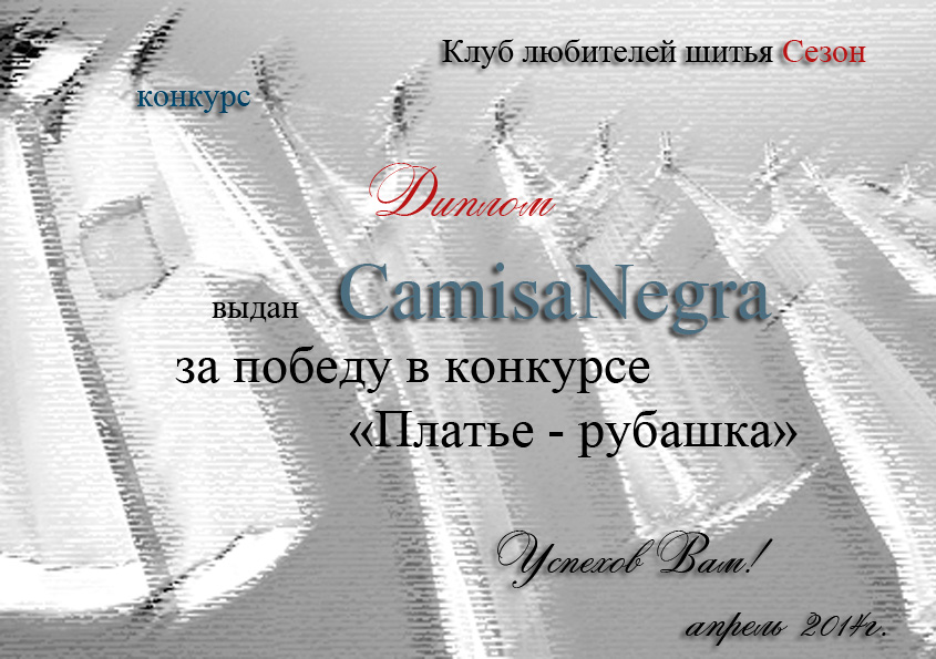 Наши поздравления, диплом и приз от спонсора mvf, мы вручаем нашей креативной конкурсантке под громкие и продолжительные аплодисменты. Надеюсь, мы ещё не раз увидим смелые и очень запоминающиеся работы CamisaNegra в конкурсах Сезона!