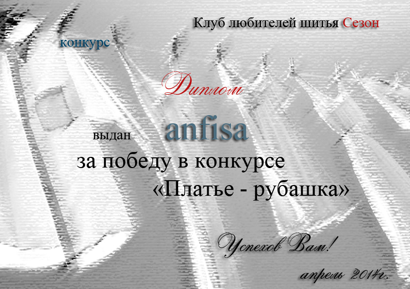 А для меня это платье - как раз самое настоящее платье-рубашка (по крайней мере до этого конкурса я про другие и не думала). Поэтому поздравляю с двойным энтузиазмом!