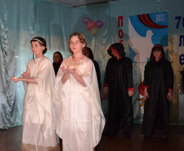 К 8 марта провела мероприятия для детей, молодёжи, корпоратив "Чемровочки", но показывать нечего - использовала имеющийся реквизит,....... а 9 марта узнала, что местная школа решила отказаться от участия в смотре художественной самодеятельности, поскольку у них ничего не готово, делать некому и не с кем. Я сказала: "Ни фига! Это же "Салют Победы"! Я вам помогу" и приняла огонь на себя...