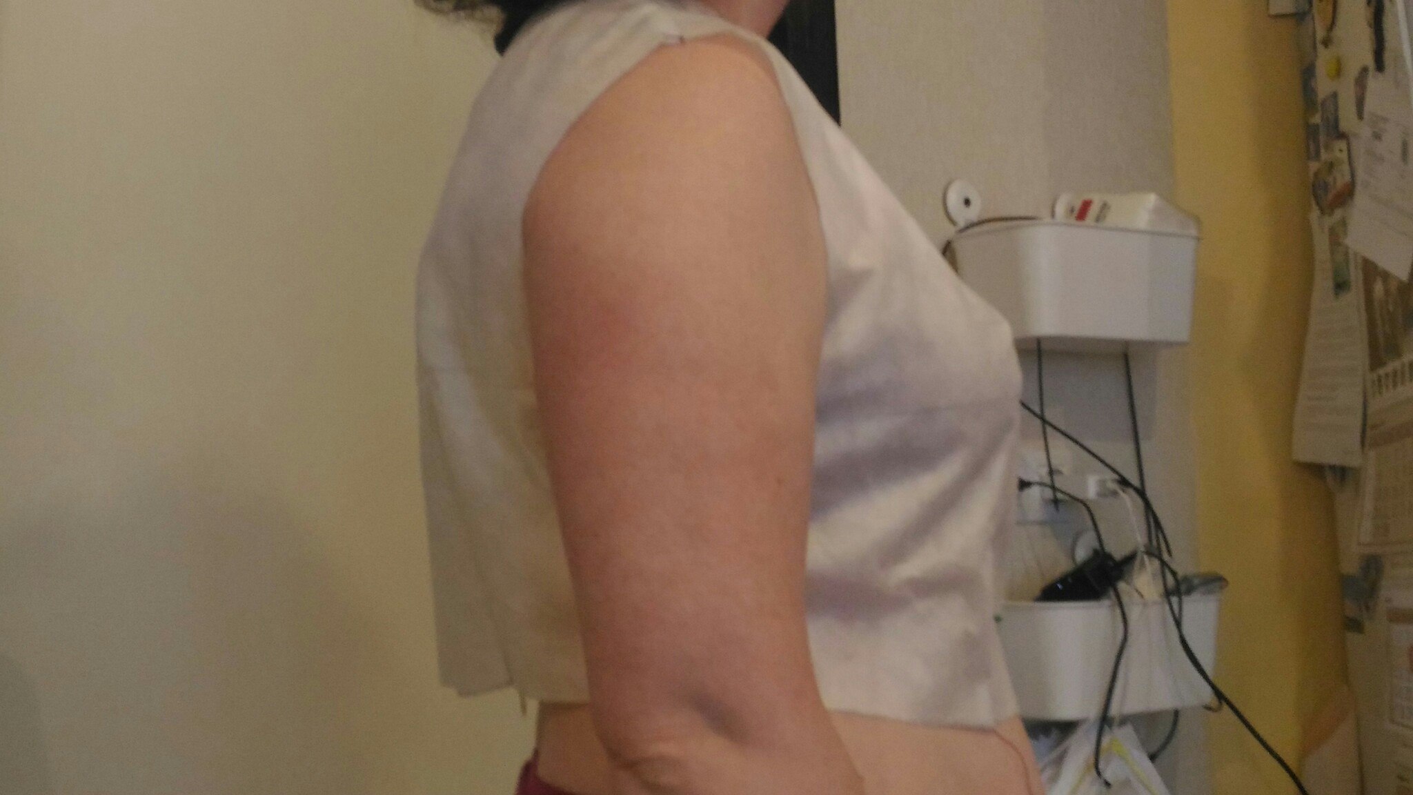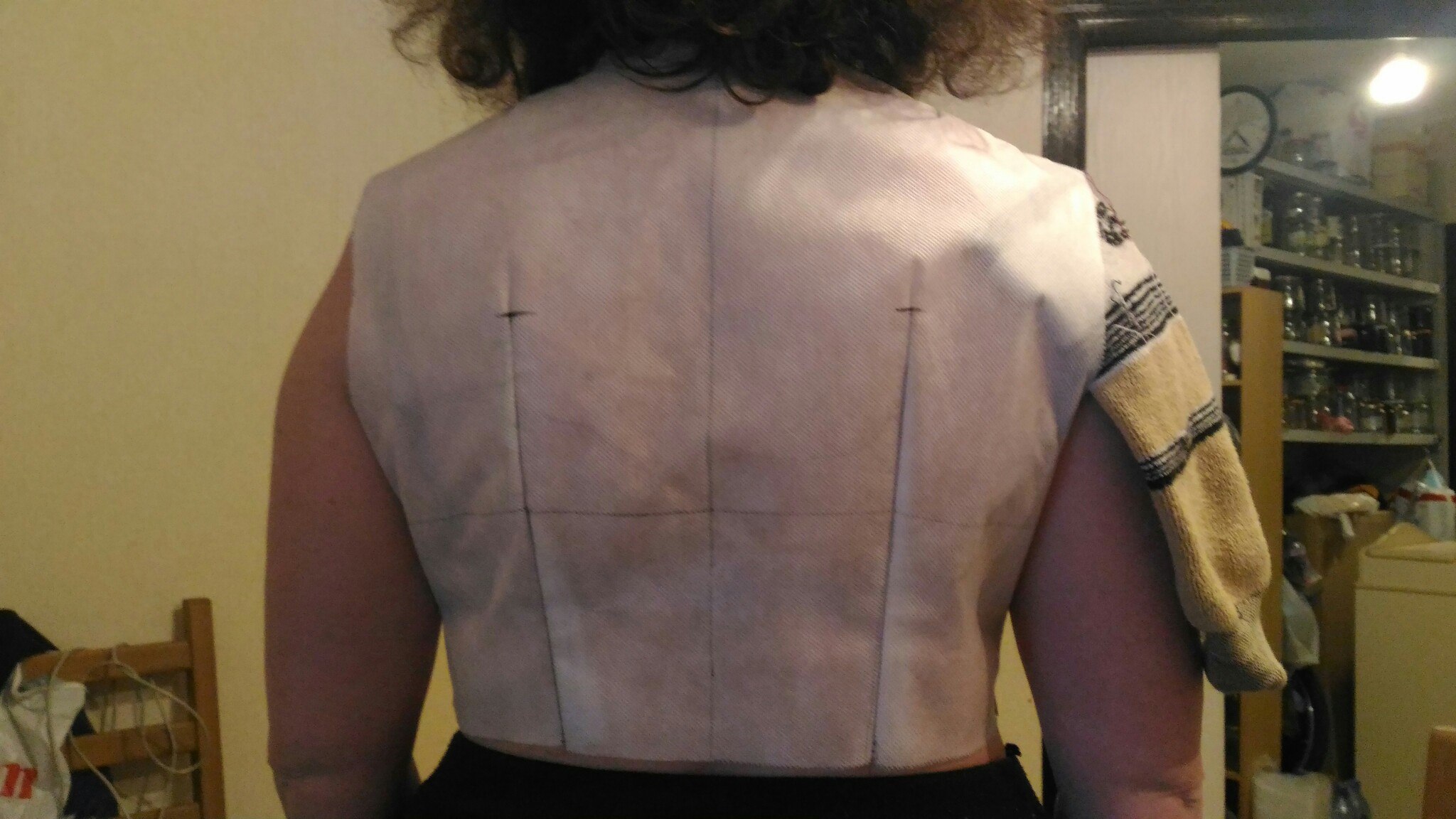 путятична Опубликовано 19 марта, 2017 Поделиться #340 Опубликовано 19 марта, 2017 переделала первый пробник, скосила плечо, тк плечи покатые. Увеличила вытачки по спине. Я и не подозревала, что я кривая.... офисная работа, чтоб ее....Нужно исправлять залом справа? отшивать уже пробник в ткани?Что еще нужно исправить? Ссылка на сообщение Поделиться на другие сайты Поделиться