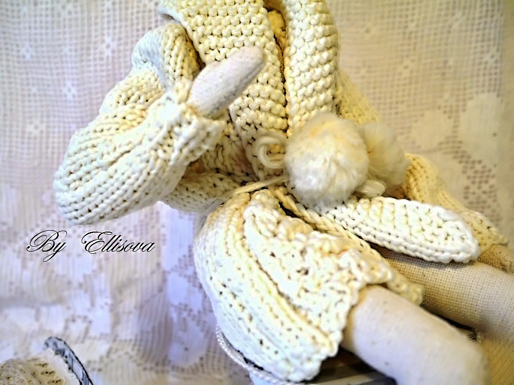 И ещё одна. Попробовала технику грунтованного текстиля. Волосы из бахромы. Одежда также не снимается.