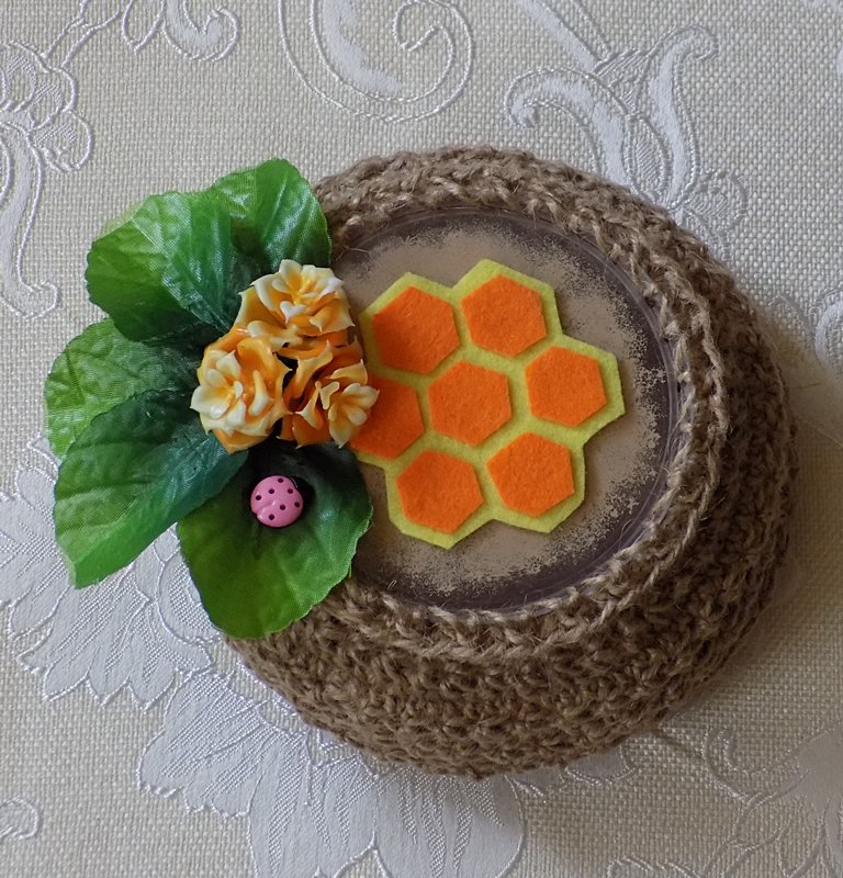 В копилку джутовых корзинок , медовая шкатулка крючком