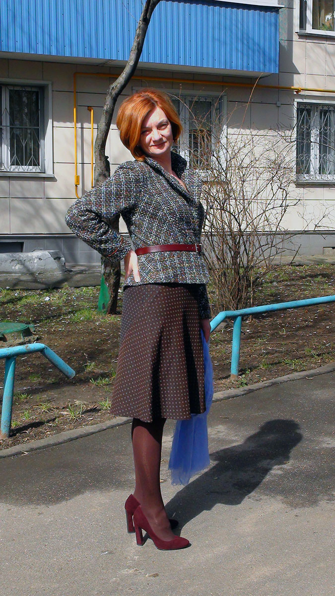 Таня, отличный жакет и юбочка! Вам очень идет. Ну, такие мы бабы, вечно не довольны собой, то талия не та, то попы нет или наоборот её много.... А другие смотрят и думают: Я бы с тобой фигурой бы поменялась и ни в жизнь про неё ничего плохого бы не вякнула, тока дифирамбы! Вот, мы все такие....,вякальщицы... :-)