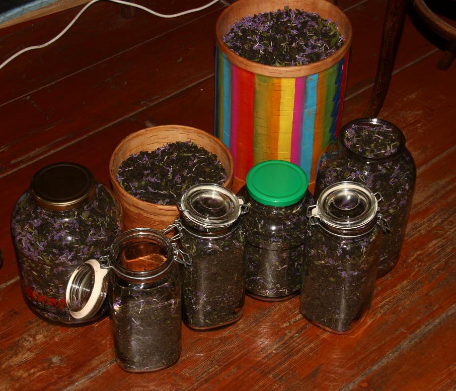 Мы добавляем в готовый чай отдельно высушенные цветы и зелёные листики с верхушек иван-чая. Чай очень вкусный. В интернете много пишут о всяких чудодейственных свойствах этого чая, но это далеко от правды. Единственное, что установлено достоверно - его безвредность :) Состав после ферментации существенно меняется, поэтому просто переносить свойства сушёного листа на лист ферментированный неверно. Мы любим этот чай за его вкус и заготавливаем каждое лето литров по 35-40. Пьём только его, хватает на год. Точно так же делаем и земляничный, только его дольше ферментировать - часов 6. Точное время не скажешь, надо следить за запахом.