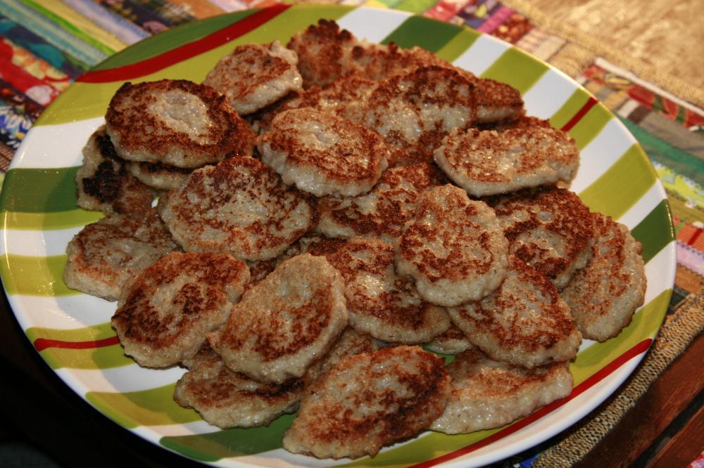 Печь такие оладушки я научилась в студенческие годы, этот рецепт был очень популярен в нашем общежитии, ведь делаются оладушки практически из ничего. Для теста нужна тёплая вода, соль и сахар по вкусу, дрожжи и мука, и напоследок – что-то из специй: ваниль, корица, мускатный орех... Тесто делается густоты сметаны, как всегда на оладьи, можно даже пожиже. Как только оно подойдёт, можно печь.