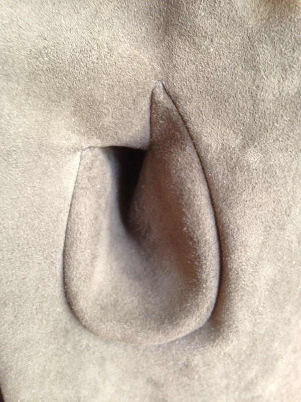 Замшу шила специальными иголками для кожи трехгранными, тонкими, "сметывала" канцелярскими скрепками. Шила на зингере, но это моя причуда и слабость, мне он просто нравится, к тому же ручная машинка шьет медленно, и для меня это в этом случае особенно удобно - шовчик-то очень уж узкий.