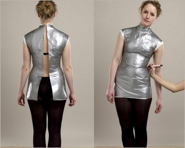 В Великобритании изобрели жидкую ткань из баллончика, которую распыляют прямо на тело, ткань высыхает,и одежда готова, ее можно потом снять , наполнить и вот вам готовый манекен, а еще можно такую форму разрезать по рельефным линиям и у вас готовая индивидуальная выкройка-основа.