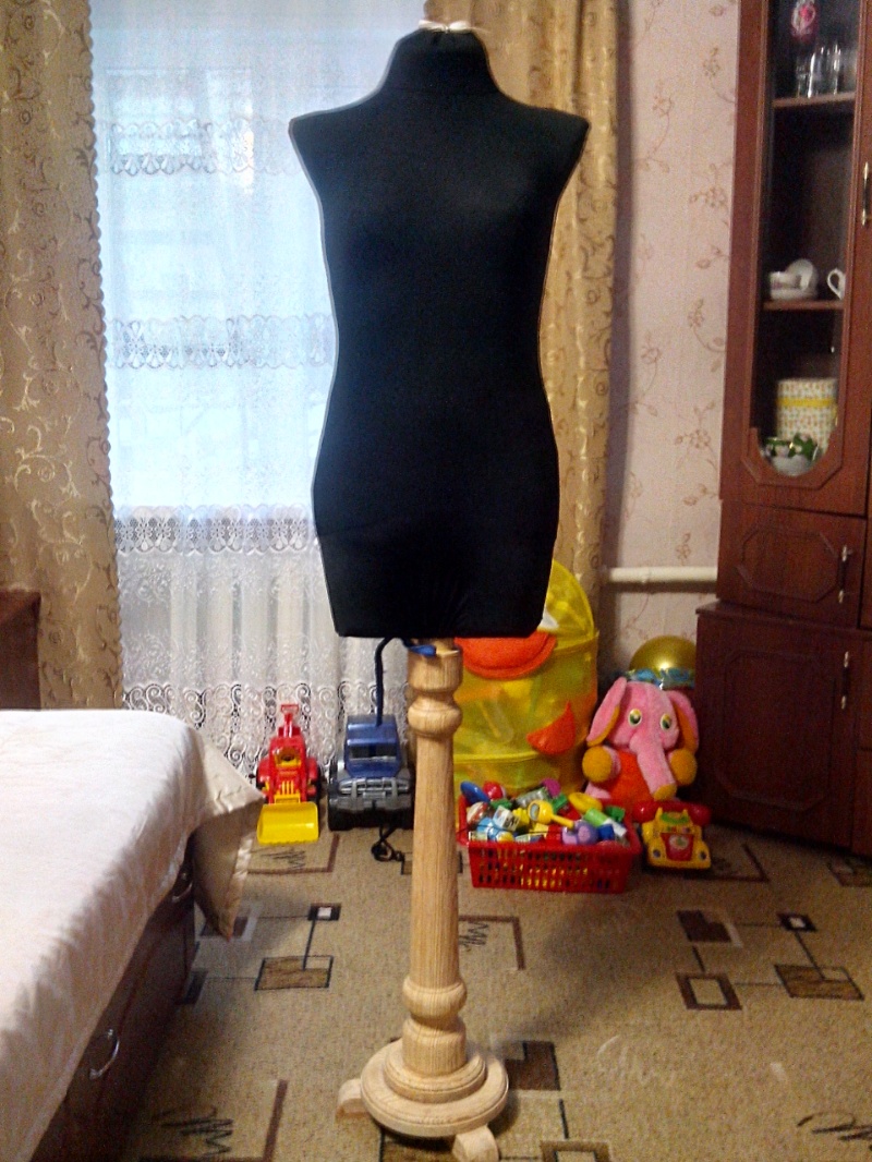 post-49724-1449554371_thumb.jpg девочки, расскажу о своем манекене, может так уже кто мастерил. Денег не тратила на него, все было под рукой.... короче в основе пластмассовый манекен с бедрами(подруга пожертвовала, торг. одеждой, цена около 300р. ) на талию намотала скотч поролоновый, нужен был больший обьем в этом месте, т.к. размер манекена у меня был 42, а у меня 44-46, далее взяла клей момент обувной, но не супер клей!!! Намазала в произвольном порядке не большими участками , на этом клей накладывала синтепон толщ. 1 см.,тоже не очень большими кусками, в процессе подгоняла под свои мерки, далее еще один слой синтепона. Затем оставляем все сохнуть.около 1 часа, чтоб наверняка...в это время можно например сшить чехол, я его сделала из своей старой водолазки, отрезала рукава, прошила с двух сторон, в соответствии с изгибами на глаз делала... т.к. водолазка была короткой на манекен , надшила с низу еще небольшую часть из стрейч ткани, что было, внизу сделала шов, в него пропустила шнирок, на горловине надсекла и в нее тоже ленту. Далее, у меня была подставка под цветы, я взяла от нее ножку, к этой ножке муж прикрутил сверху фанерку толщиной 1-2см в центре, она вырезана таким образом, что не выступает за края ног манекена, все отрезано в край, потом сверху поставили наш манекен и снизу саморезами прикрутили фанерку к ногам манекена намертво... ушло 10 саморезов. И натянули сверху нашу водолазку на манекен, но делать это нужно осторожно, чтобы не содрать синтепон, затянули шнур внизу, завязали бант, затянули ленту на горловине и сюда бантик , и вот оно чудо!!!! Не продавится никогда, а если что можно всегда и чехол постирать и синтепон подклеить в крайних случаях, короче на века!!!!