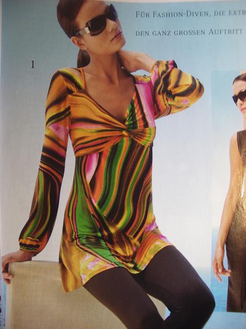 В кофейне журнальчик Отто стащила - перефотографировала несколько "кофточек" и "платьюшек",по немецки простеньких - но не без претензии на гламур :-)