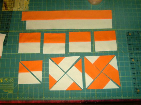 Треугольнички не сшивала:))) А нарезала из квадратов - это такая техника быстрой сборки. Сначала сшиваются по периметру два квадрата ткани, сложенные лицом к лицу, а потом этот бутерброд режется по диагоналям. Получается 4 квадратика, диагональ у них - это боковой шов у большого квадрата (тут вспоминаем Пифагора и вычисляем необходимые размерчики)