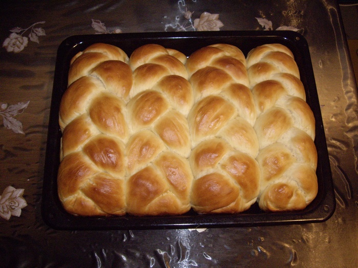 Лиора Опубликовано 30 марта, 2008 Поделиться #134 Опубликовано 30 марта, 2008 Вот мои халы (не прошло и полгода). С прошлой Субботы) Еще горячими снимала)))Тесто простое: 3 яйца, полстакана растительного масла (рафинированного), 2-3 чайные ложки дрожжей, 2 стакана теплой воды, сахар, соль по вкусу. Можно сделать сладкое тесто и добавить ваниль, но мои так не любят, поэтому я делаю ближе по вкусу к обычному хлебу. Смазывать яйцом и посыпать маком по желанию. Про муку опять забыла... В общем столько, чтоб к рукам не липло. "Никогда не думай, что ты иная, чем могла бы быть иначе, чем будучи иной в тех случаях, когда иначе нельзя не быть" (Л. Кэрролл) Моя Ярмарка Мастеров Ссылка на сообщение Поделиться на другие сайты Поделиться