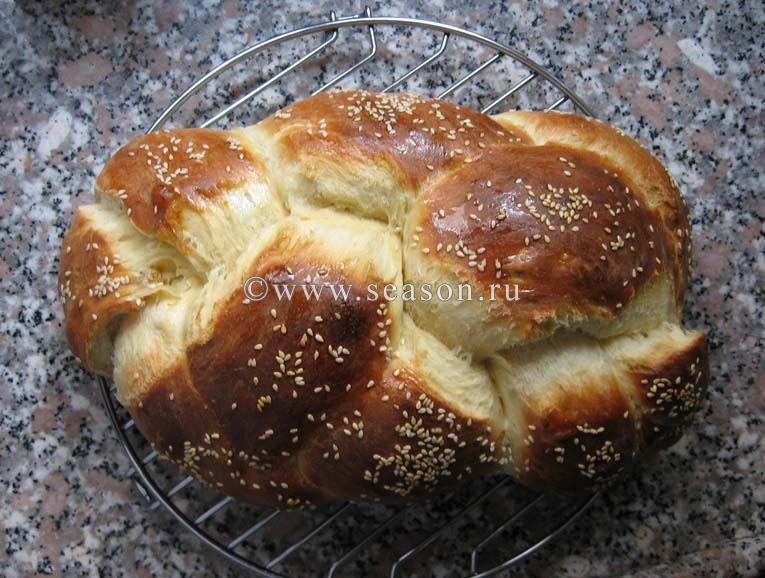 Lusya Опубликовано 6 января, 2009 Поделиться #142 Опубликовано 6 января, 2009 Пекла халу по рецепту с сайта израильского изготовителя муки Штибель.Рецепт перевела Caprice . Хала Ингредиенты:3/4 чашки воды2 яйца + 1 желток2 ст.ложки сухого молока1/4 чашки растопленного сливочного масла1,5 ч.ложки соли2 ст.ложки сахара1 пакетик ванильного сахара3,5 чашки хлебной муки3 ч.ложки сухих дрожжей на свой вкус можно добавить после сигнала изюм или орехи.Программа выпечки – SWEET-------------------чашка=240мл. получилось вот это, в тесте есть изюм, сухое молоко и воду, заменила на просто молоко, ванилин не клала.. не люблю синтетику в хлебе: Ссылка на сообщение Поделиться на другие сайты Поделиться