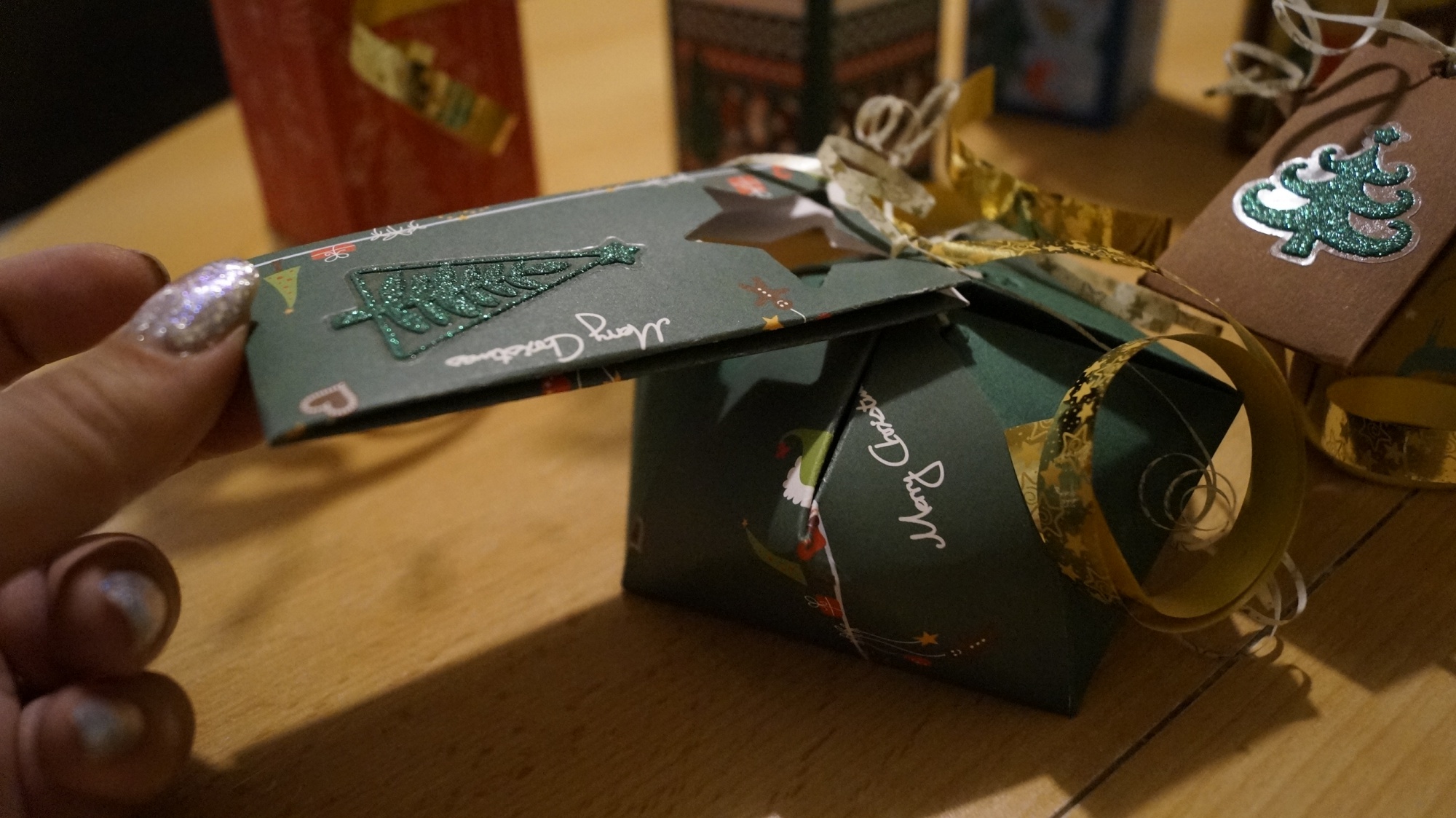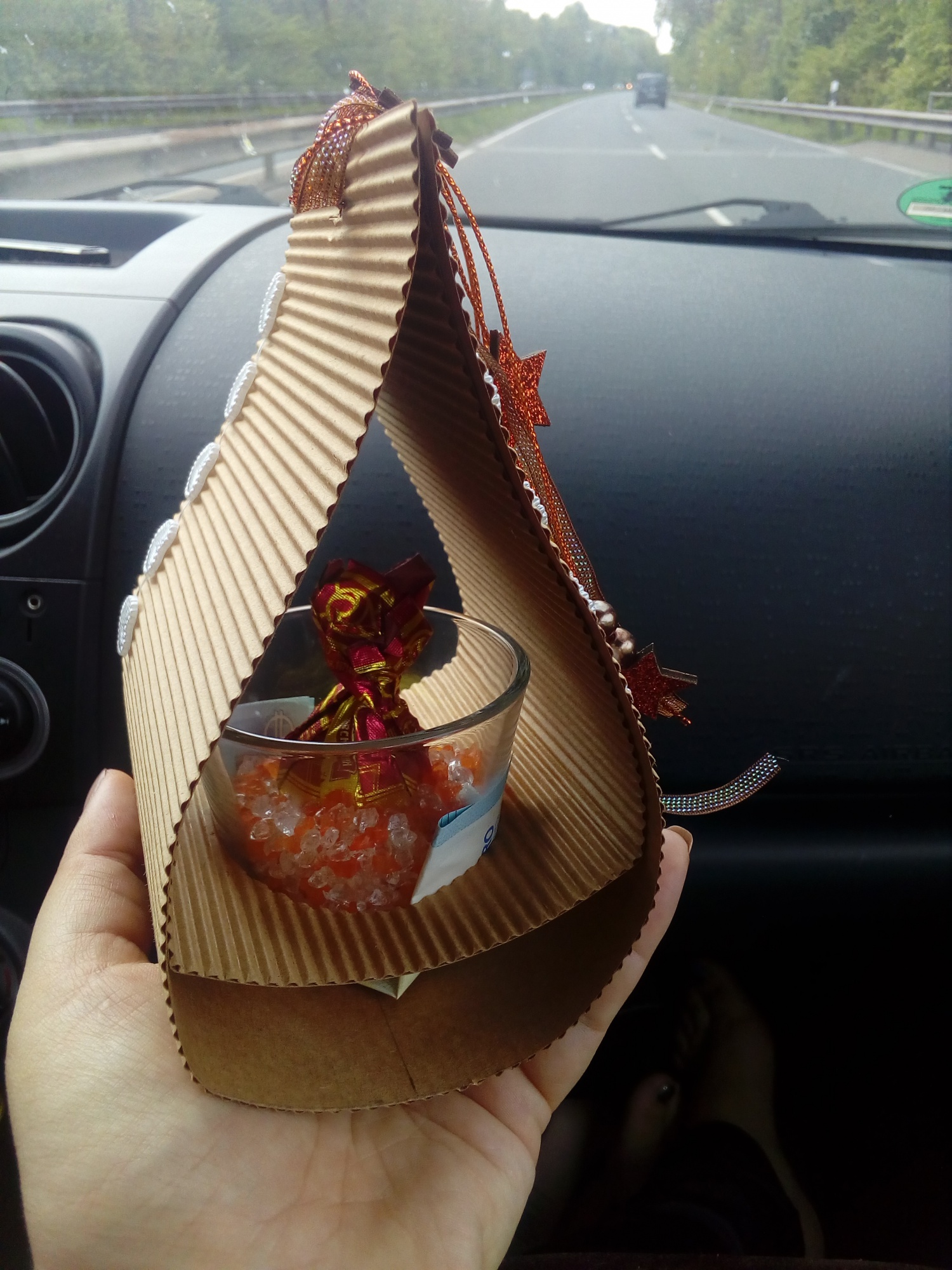 Inn@w Опубликовано 14 мая, 2017 Автор Поделиться #58 Опубликовано 14 мая, 2017 Ещё одна упаковка. На этот раз не-коробочка))) Люблю этот вид упаковки. Она очень лёгкая, но достаточно эффектная. Подходит для всего, от упаковки свечек до капкейков. Делается буквально за пару минут. В этот раз я её соображала буквально за пару минут до выхода, для "оригинальной" упаковки денежки. Если кто-то захочет повторить, то вам понадобится две полоски плотного картона (я взяла гофрокартон) одинаковой ширины, вторая полоска короче первой на 4-6 см. Посередине короткой полоски делаем круглое отверстие, туда сражается затем подсвечник или вкусная конфета. Короткая полоска подклеивается к длинной таким образом, что первая длинная полоса служит донышком второй... Ну и дыроколом делаем отверстия для красивой ленточки, наклеиваем красивостей и вперёд! Фотографировала уже в машине; -) о книжках и путешествияхо рукоделии Ссылка на сообщение Поделиться на другие сайты Поделиться