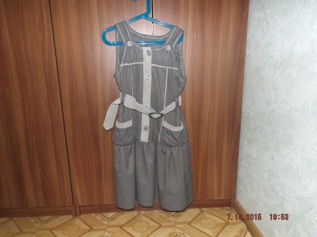 МамаТаня Опубликовано 15 октября, 2015 Автор Поделиться #7 Опубликовано 15 октября, 2015 Забыла написать про платья, в них нет нагрудной выточки, той которая на выпуклость грудной клетки, полочка платья без выточек даже для дочи с пузиком. Когда сделала выкройку стала думать как ее избежать (ну не делать же выточку для маленькой девочки), залезла в интернет на сайты магазинов, продающих детскую одежду, и рассматривала узел пройма-плечо-горловина, где попадались полосочки - это было счастье, оказалось, что горловина под горлышко и крайняя точка плеча находятся почти на одном уровне (высоте), т.е. очень большой скос плеча на полочке. Я так и сделала, построила как обычно, рассчитала выточку, и на размер выточки опустила плечо, оно получилось немного выше выреза горловины спереди. (если интересно в цифрах, спрашивайте, все записи есть)))Дальше одежки для деткиПлатье из трикотажной вискозы с эластаном, лиф простой, юбка отрезная и присобранная на талии, в шов вставлена кулиска в которую продет поясок. Все платье сшито на оверлоке, подгибка двойной иглой с расстоянием 4 мм между иглами. Теперь школьный сарафан. Ткань костюмная, купленная маме на брюки, не мнется совсем, тяжелая, слегка сыпется, но утюжиться с трудом, складни заутюживала минут 40. Карман как и в сарафане сшитом для 1-го класса (еще покажу), дочь сказала что очень удобный, внизу присобран для создания объема в самом кармане, сверху резиночка вшита, телефон не вываливается даже при прыжках))). Сзади поясок для большего приталивания, не хотелось шить очень плотно, т.к. под низ возможно одевание плотных вещей. Моя тема. Ссылка на сообщение Поделиться на другие сайты Поделиться