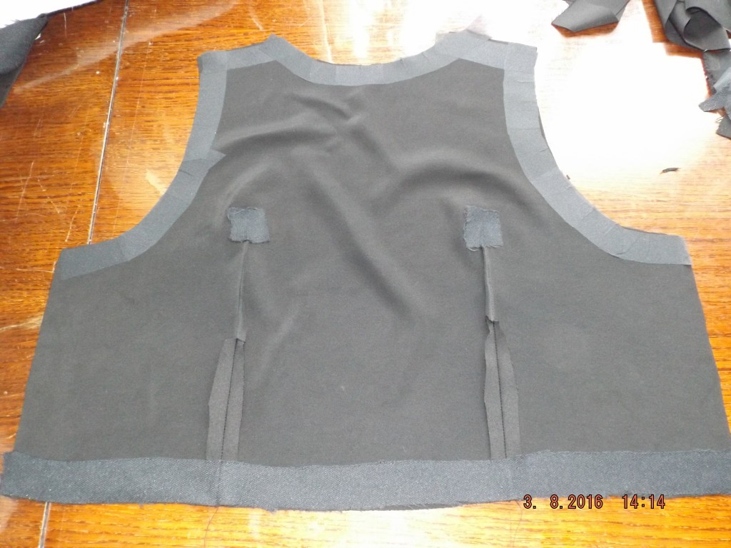 МамаТаня Опубликовано 8 августа, 2016 Автор Поделиться #386 Опубликовано 8 августа, 2016 (изменено) Жилет это тоже отдельная песня, после пошива мне показалось что сшить пиджак если не проще, то на том же уровне, если решусь шить пиджак, поделюсь впечатлениями))).Ткань костюмная стрейчевая, почти не мнется, но чтобы разутюжить шов, или выточку пришлось повозиться, утюжила с паром, без пара, прикладывала брусочек, узкий конец выточки разложить не удалось, пришлось отвернуть на одну сторону и так оставить, дублировала не по подкладу, а по верху, был опыт пошива платья из тянущейся ткани, там все припуски не то чтобы пропечатались снаружи, а как-то вылезли рельефно, и чтобы подстраховаться сделала так. Выточки по построению полочки и спинку переносила вниз, на подкладке оставила как и строились, воспользовалась видео для обработки цельнокроенной обтачки с зашитыми плечевыми срезами, мне понравилось). Еще, на подкладке спинки заложила складку, не знаю, нужна ли она там)), но мне показалось логичной при таком качестве ткани. Изменено 8 августа, 2016 пользователем МамаТаня Моя тема. Ссылка на сообщение Поделиться на другие сайты Поделиться