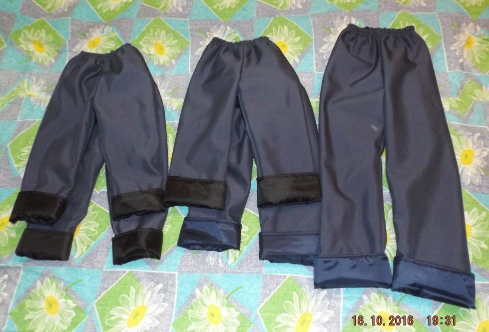 Я всю прошлую неделю шила штаны, из плащевки на флисе, с подкладкой-сеткой, они мне даже немного надоели))). Всего было сшито 11. Пять себе (4 малышам + 1 Даше), 3 куме и 3 сестре)), правда сестру я заставила двое скроить, а одни сшить под моим чутким руководством)))