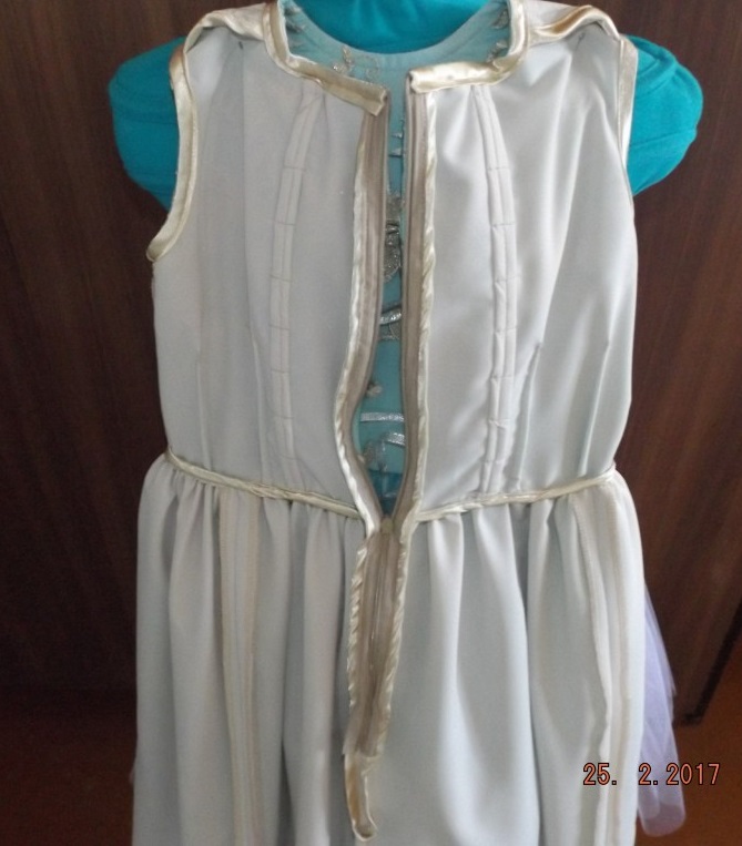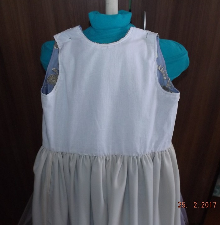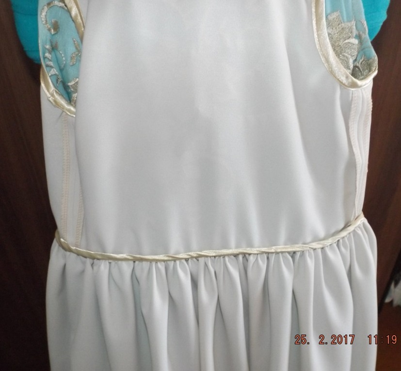 МамаТаня Опубликовано 27 февраля, 2017 Автор Поделиться #532 Опубликовано 27 февраля, 2017 (изменено) А бязь на подкладку не слишком плотная?не очень, она по плотности ситец напоминает. В зеленом платье, если кусочек кружева остался, можно сверху коротенькую юбочку сделать. Может с асимметричным подолом попробовать.Ой Элла, я с этим кружевом, как обезьяна с очками))), кружево шириной 126, длина по одному краю 1 м, а со второго вырезан кусок, и длина по второй стороне 56 см. Длина по талии с учетом вставок на шнуровку 78см, сборка одного метра до длины 76-77 см, мала, обтянет фатин и не даст ему развернуться, пришить те 56 см, никак-рисунок зеркальный. Был вариант пришить клином на бежевую основу под фатин, но подумалось, что будет выглядеть как передник у Золушки))), а у нас ведь бал)). Кружево такое же как и синее, фрагменты крупные, я считала, если вырезать, то всего получится восемь..., так что не стала ничего делать и оставила так. Изменено 27 февраля, 2017 пользователем МамаТаня Моя тема. Ссылка на сообщение Поделиться на другие сайты Поделиться