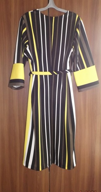 МамаТаня Опубликовано 23 апреля, 2017 Автор Поделиться #543 Опубликовано 23 апреля, 2017 Трикотажное платье Ог больше ОБ, приталивать заказчица не очень хотела, на примерке закалывала как нравилось ей и маме). На полочке французские выточки чтобы поломать полоску, выбрала тонкую желтую полосу по середине переда, широкую желтую срезала сбоку и пустила на удлинение рукавов. Моя тема. Ссылка на сообщение Поделиться на другие сайты Поделиться