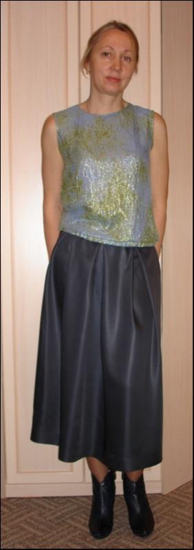 K@трин Опубликовано 6 ноября, 2015 Автор Поделиться #9 Опубликовано 6 ноября, 2015 Длинная юбка, идея из Бурды -http://burdastyle.ru/vikroyki/yubki/yubka-burda-2011-9-136/. Журнала у меня этого не было, а юбку такую хотелось, я взяла выкройку юбки с небольшой трапецией, удлинила ее, соединила в боковых швах в одну деталь - шов получается один сзади. Клин выкроила длиной 60 см и шириной 2х22 и немного скруглила. Свитер из ШИКа. Жилет: сначала был свингер, затем из него сшит полушубок с воротником, носился активно лет пять. Потом мех стал ползти, выкинуть было жалко, решила перешить в жилет, порванные места заменила из остаткав меха, рукава пошли на капюшон, в качестве отделки капюшона была взята очень старая песцовая шапка. Мех у нее когда -то был белый но от времени сильно пожелтел. Я решила его покрасить, черной краской для волос. Т.к. мех был очень старый ( а я до этого мех никогда не красила) долго держать краску побоялась, поэтому мех прокрасился не совсем одинаково. Ссылка на сообщение Поделиться на другие сайты Поделиться