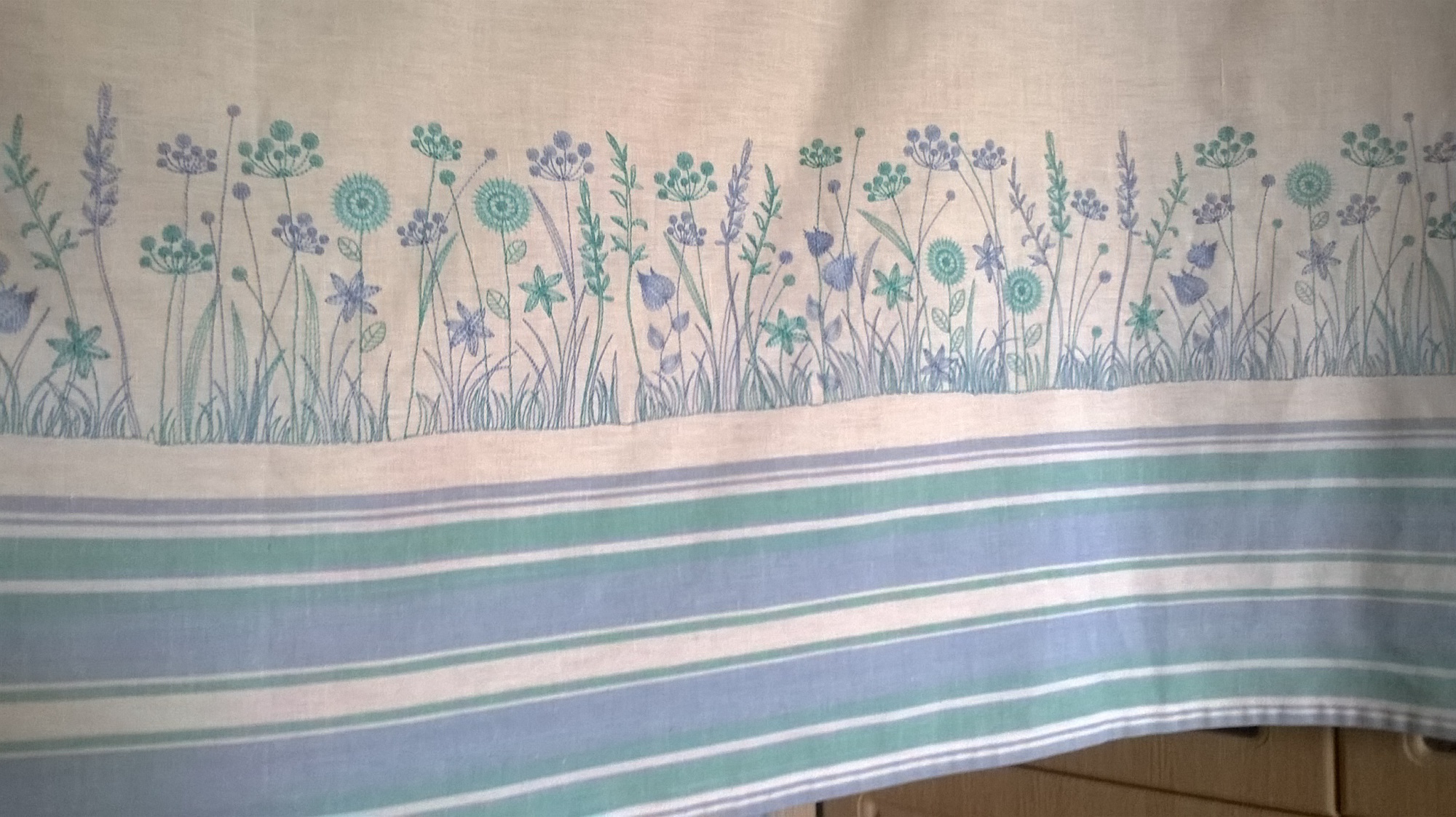 КапуткА Опубликовано 24 июля, 2016 Поделиться #977 Опубликовано 24 июля, 2016 Не удержалась, нашла хвост от телефона. Хвастаюсь промежуточным результатом :-))Льняная простыня со времён глубокого социализма, очень пожилая, полоски вытканы. Вышивка в двух цветах, нитки подобрались практически точно под цвета полосок. В намотке чуть темнее, но в вышивке по тону неплохо совпало.Дизайн от Богдана и Тани, качество дизайна потрясающее, разработан специально для тонких\прозрачных тканей, поэтому по льну шила просто так без стабилизации.В вышивке я совсем-совсем чайник, ничего не умею. Но тут даже у меня что-то получилось. Косяки, понятно, есть :-)) Самое начало, вышито только в одном цвете. Это вчерашний результат, не отпарено, всё мятое. Показываю, потому что здесь цвет похоже получился. Именно из-за цвета эти мятые тряпочки и показываю :-))Это уже всё довышито, отпарено, общая длина вышитой части 171см. Длина карниза 1,5м.Освещение уже плохое, вечер, цвета не очень внятно получились. Natalia K (@nataliak6224) • Фото и видео в Instagram Наталья (vk.com) Ссылка на сообщение Поделиться на другие сайты Поделиться