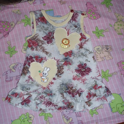 А это уже на после годика. Платьице и кофточка по одной выкройке Бурда 6/09,